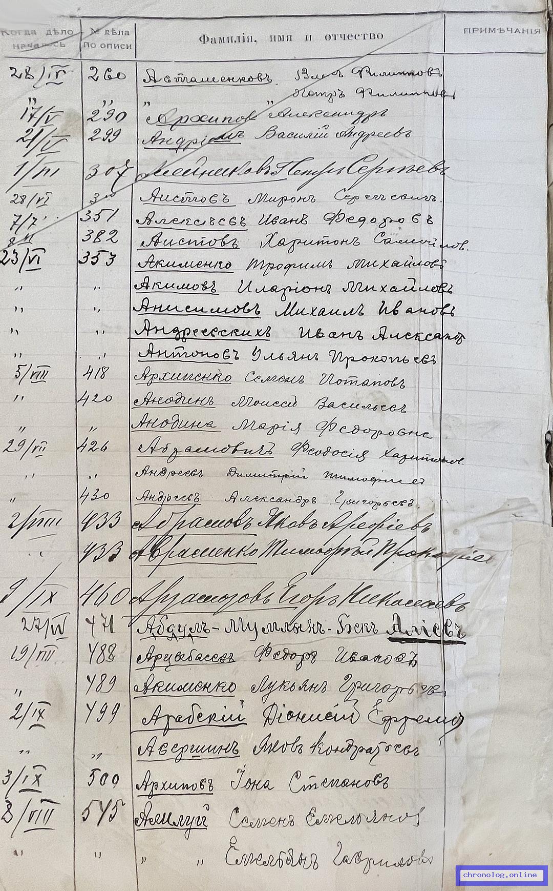 РГИАДВ 704-4-2691, Л.1об (Алфавитный список дел переселенческой части Канцелярии военного губернатора Амурской области за 1911 год): Абрамович Феодосия Харитоновна показана в деле №426 от 29.7.1911 года (нумерация по старой описи, не действительная). Время и место исхода не показано. Снимки: 1об. | ||||
