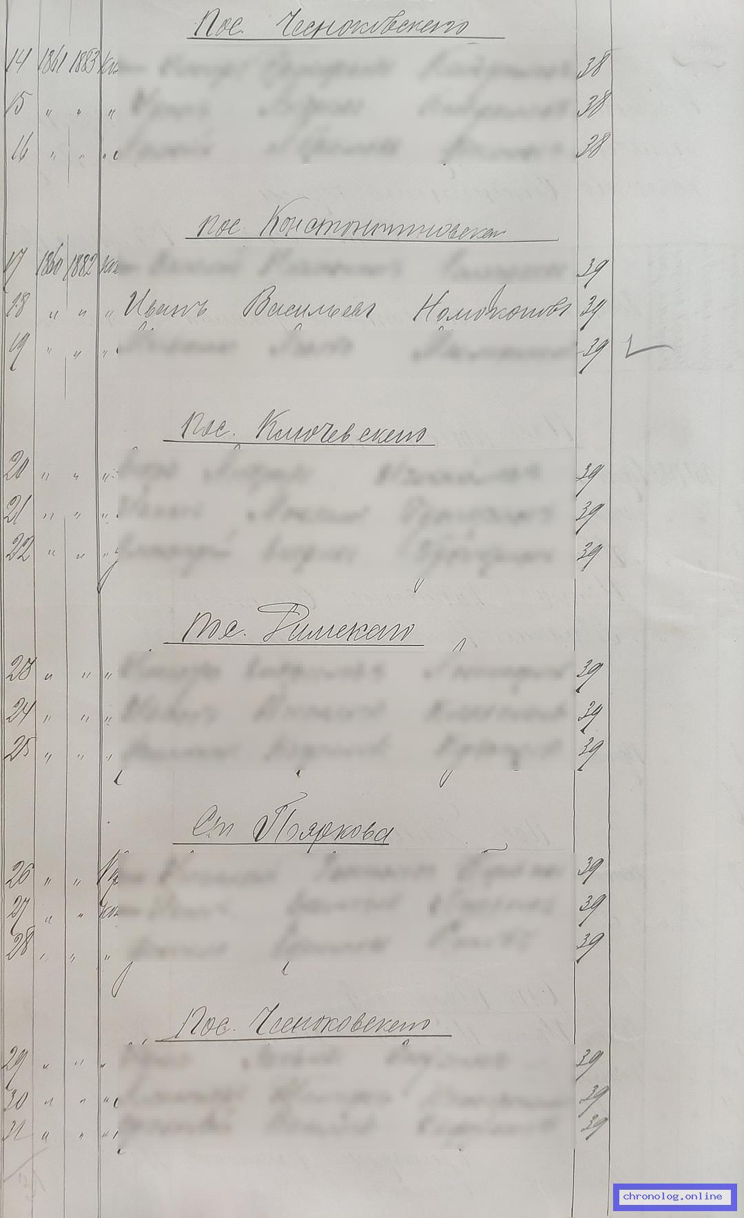 | Мочалов Пётр | деревня Ново-Покровка (Черемховская волость) | 1882 ( | ||
