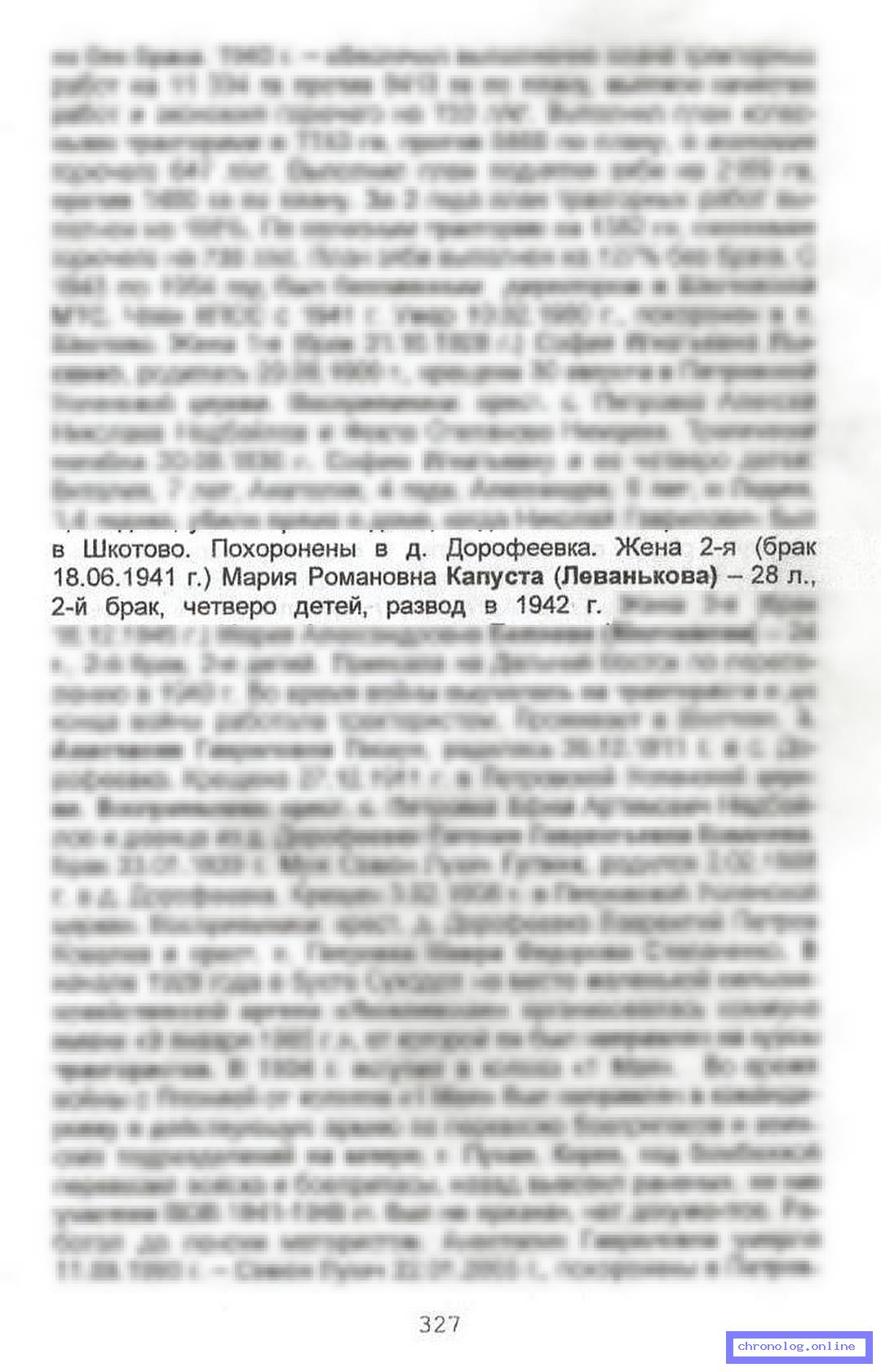 Известно, что: Дронов К.Я. 1895 г.р. проживал в Переясловке , Амурской обл. с 1916 г., жена Ирина Васильевна 1903 г.р. , дочь Ольга 06.07.1920 г.р. , место рождения - Переясловка, Амурской обл.. Необходимо выяснить: Запись МК о рождении Ольги (дочери), факт бракосочетания с Ириной Васильевной (девичья фамилия (Макуха, Омельченко?) точно неизвестна.. Предполагаемые архивы для поиска: РГИАДВ (Владивосток). | ||||