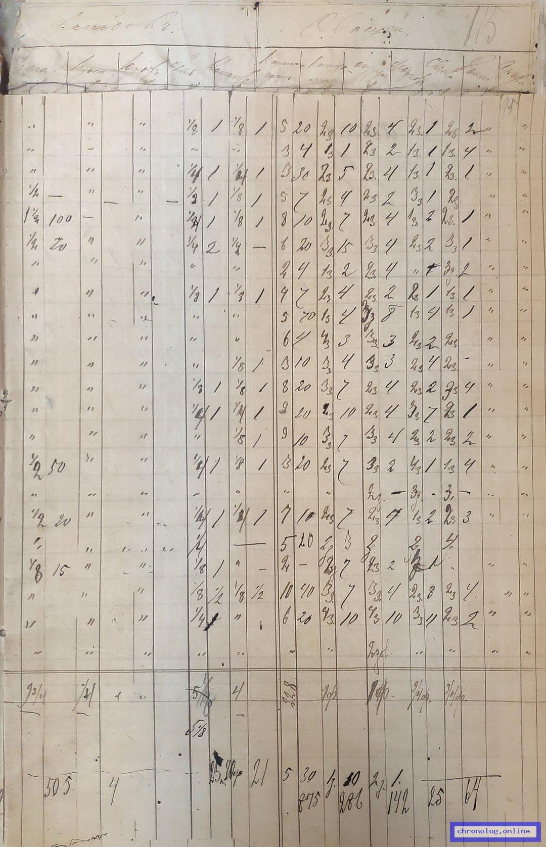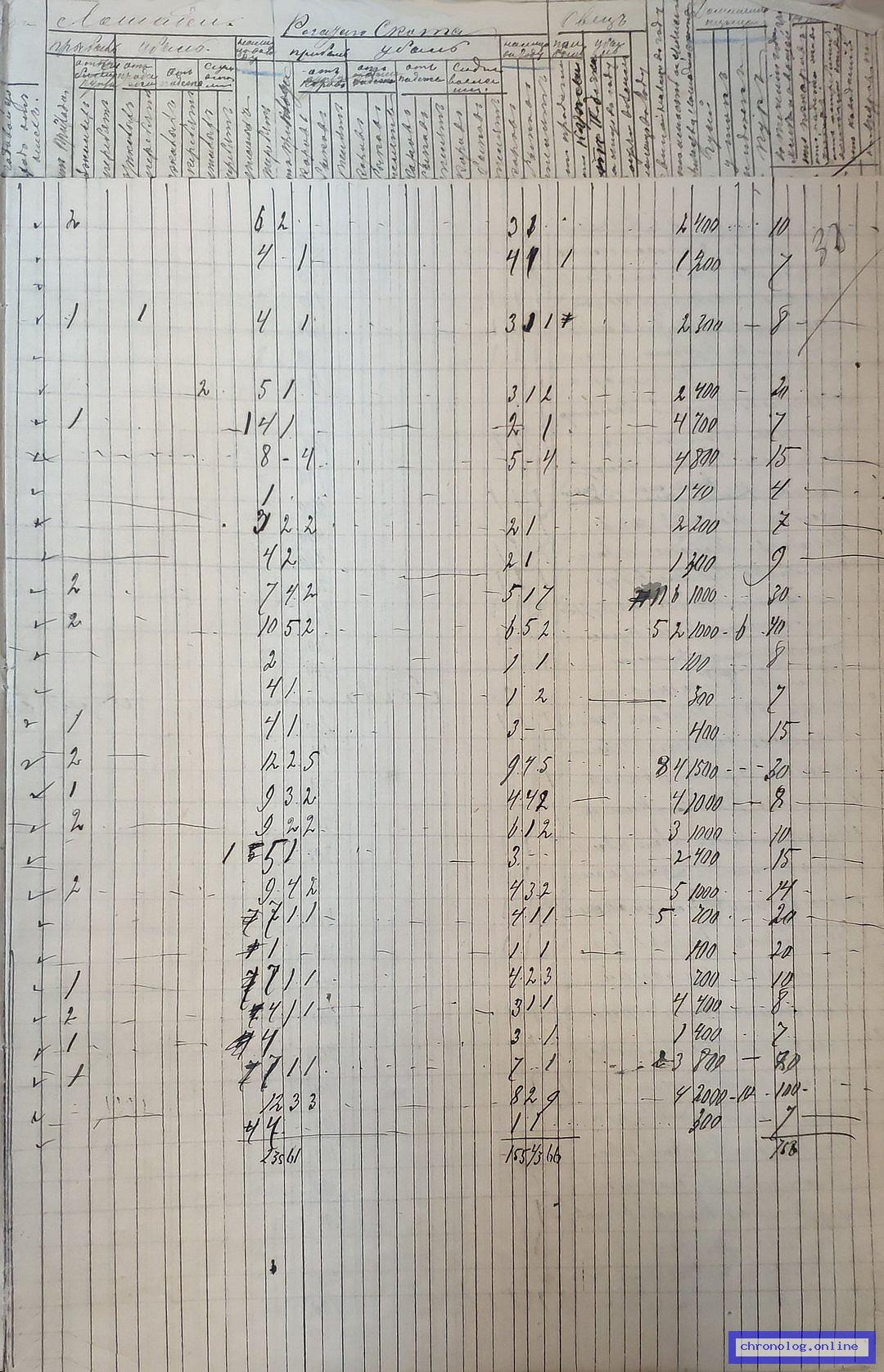 РГИАДВ 746-1-37, Л.37об., 38, 94об., 95 (Сведения о крестьянских селениях и посеве хлеба на 1896 год): Хозяйство Соловьёва Емельяна Максимовича: 1 дом, 1 амбар, 1 баня на 140р., 2 лошади, 9 коров, 4 овцы, 5 свиней на 1000р.; посевы: 1 ½ ярицы, 1 ½ пшеницы, ½ ячменя, 1/8 конопли, 9 картофеля, 3 капусты, 3 огурцы, 2 моркови, 2 свеклы. Время и место исхода не показано. Снимки: 37об, 38, 94об, 95. | ||||