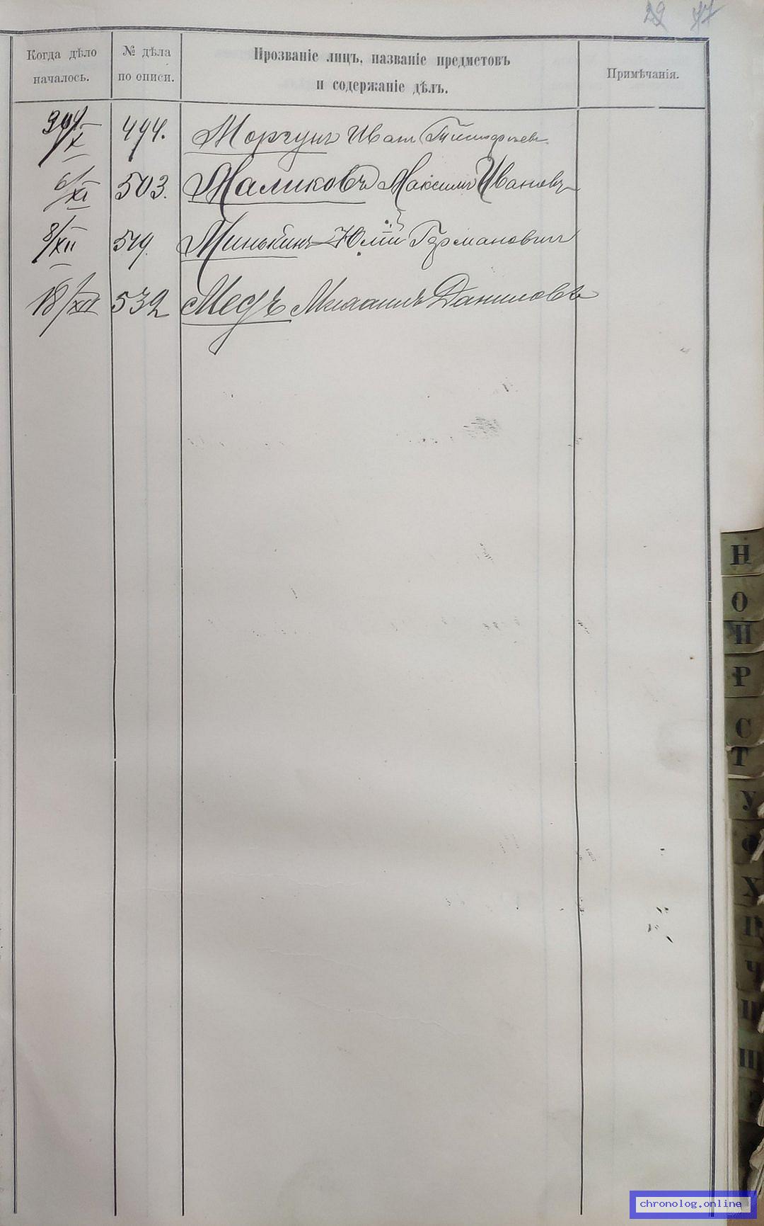 Известно, что: Необходимо отснять листы дела "Дело о причислении к сельскому обществу пос. Углового Селемджинской волости переселенцев Отмахова Я. А., Петрова Н.С. и др" РГИАДВ 704-4-3486, Л.Все 34 страницы с оборотами, но конкретно нужны все страницы про Отмахова Я.А.. Необходимо выяснить: Снимки должны быть качественными (чёткость, яркость, контрастность, фокус) с разрешением не менее 1080х1920 пикселей. Предполагаемые архивы для поиска: . Информация содержится в деле: РГИАДВ 704-4-3486 (Дело о причислении к сельскому обществу пос. Углового Селемджинской волости переселенцев Отмахова Я. А., Петрова Н.С. и др). | ||||