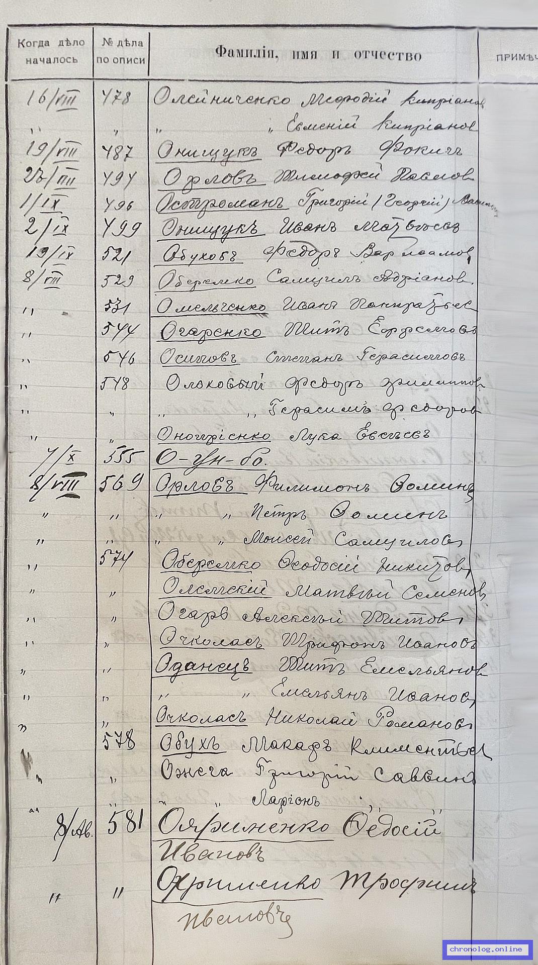 Известно, что: Необходимо найти дело о причислении Поповича Степана Елисеевича и выполнить его съёмку.