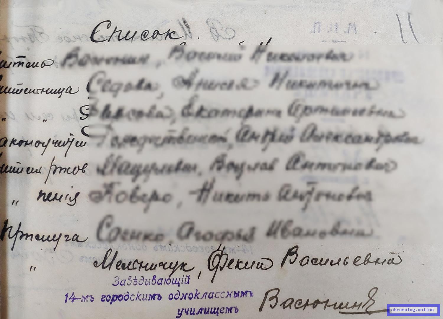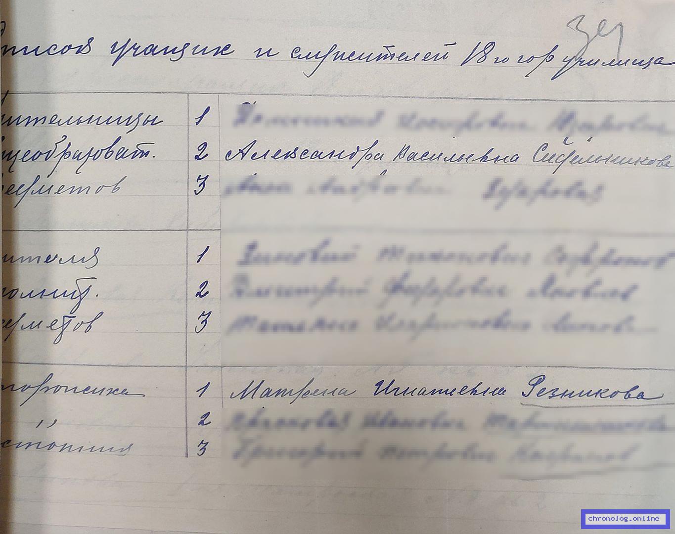 Список воспитательниц, преподавателей и персонала Владивостокского женского училища