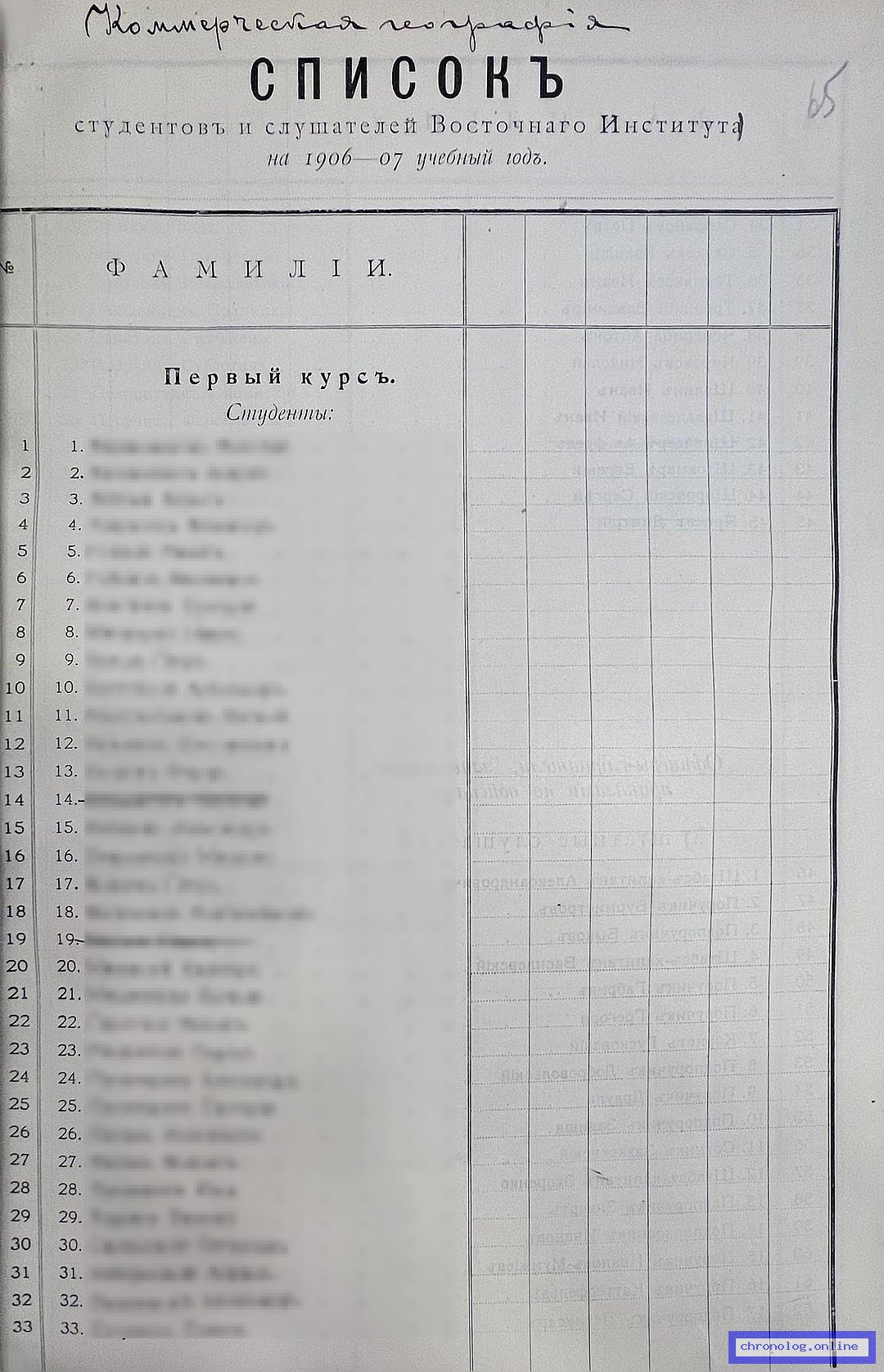 | Список студентов Восточного института в 1906 году | город Владивосток (Приморская область) | 1906 | ||