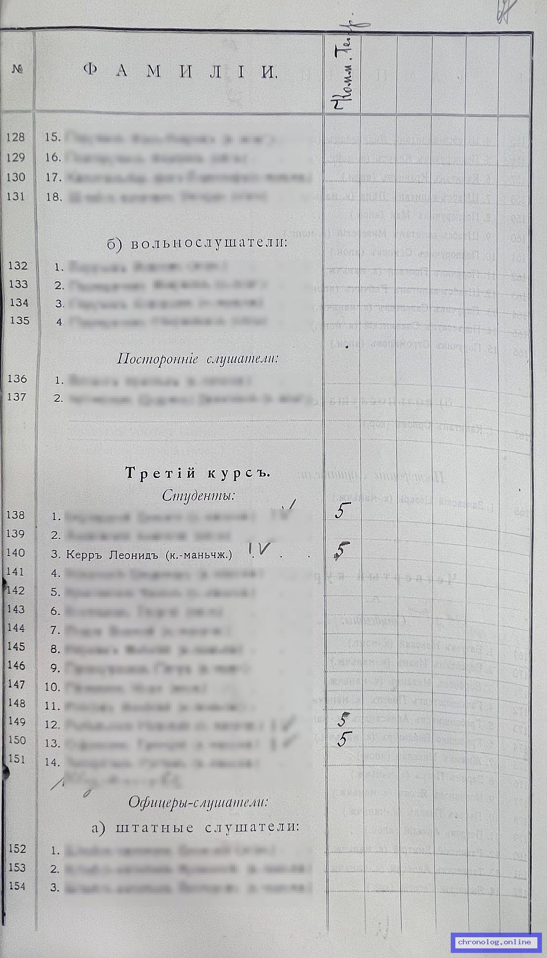 | Список студентов и офицеров-слушателей Восточного института в 1910 году | город Владивосток (Приморская область) | 1910, 1917 | ||