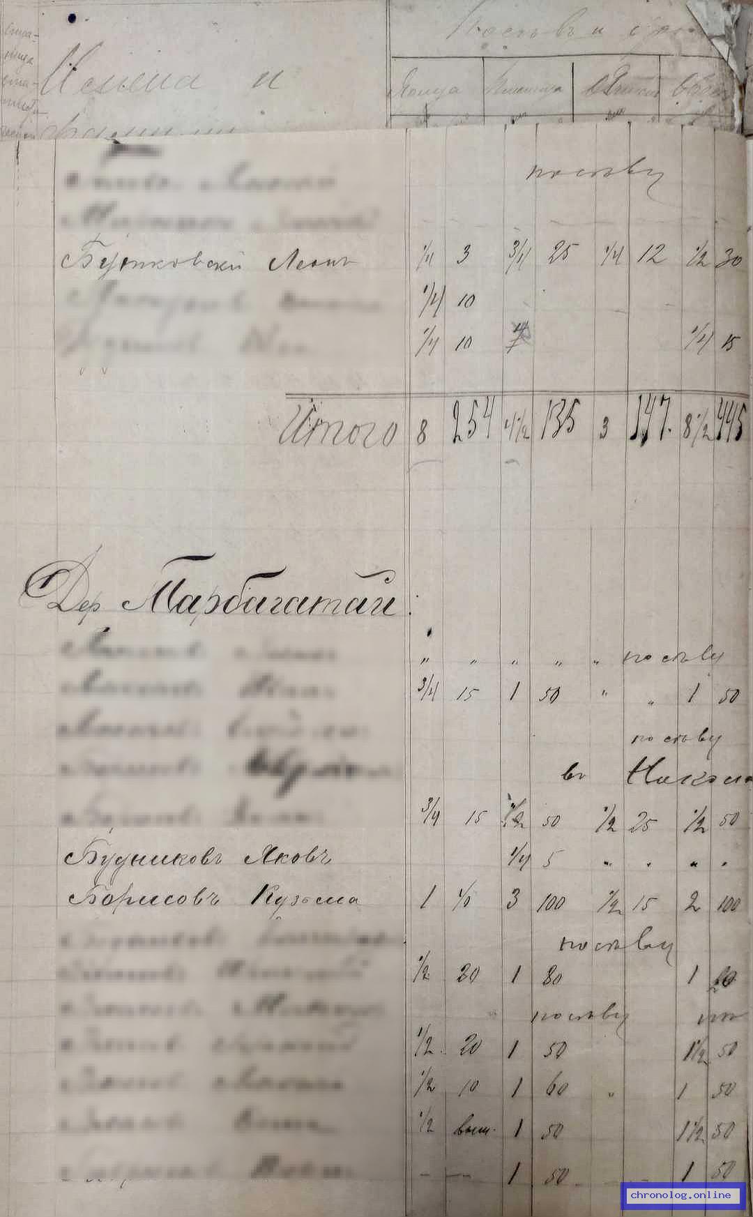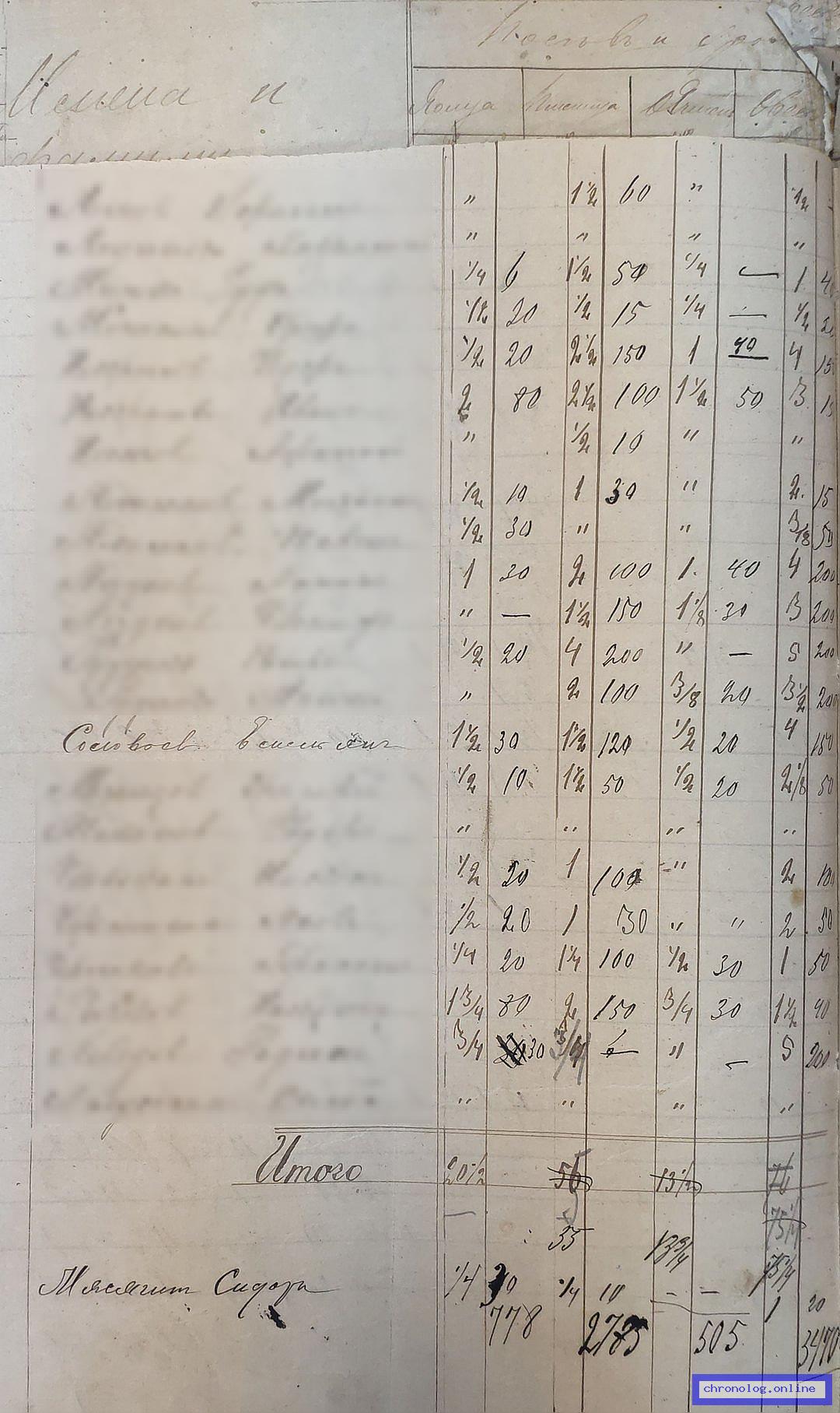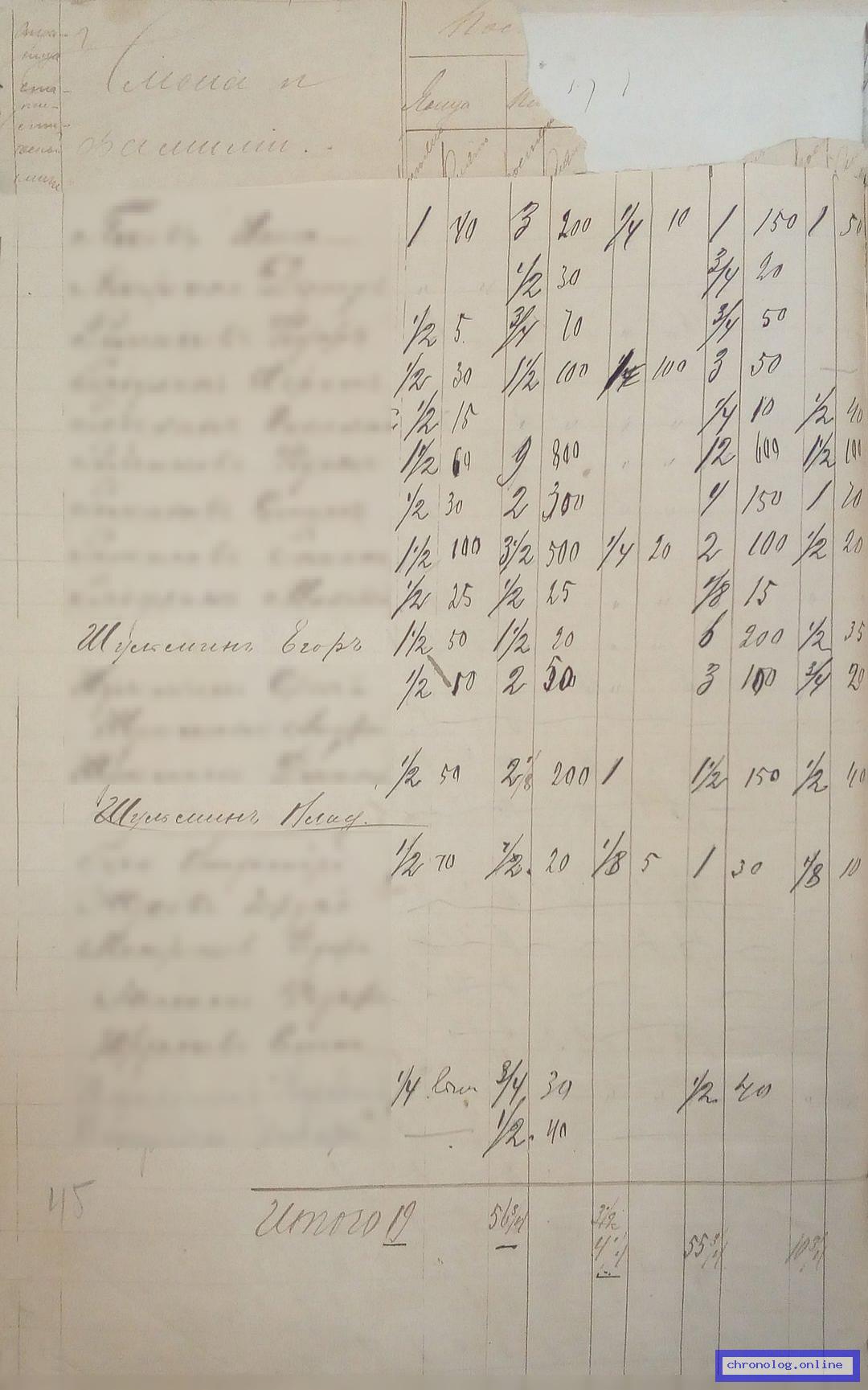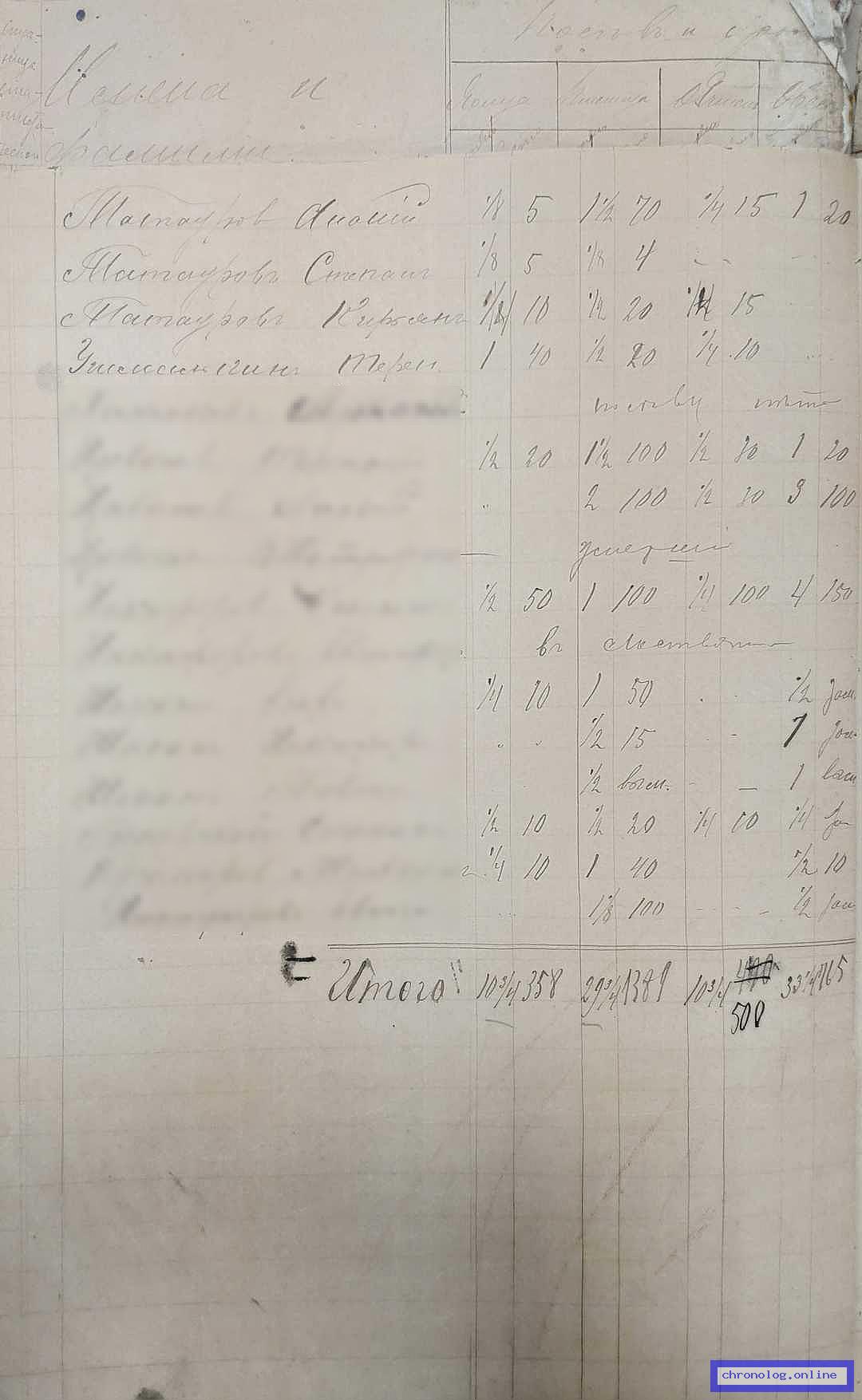 Именные списки крестьян и сведения о имеющейся земле за 1896 год