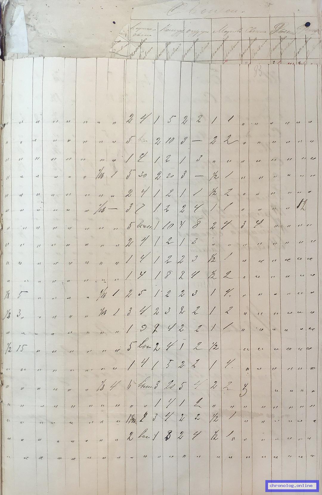 Ведомость о посеве и урожае хлебов в деревнях Томской волости