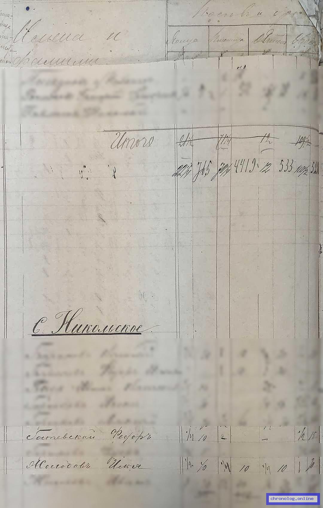 Список семей, причисленных и временно проживающих в с. Никольском Томской волости