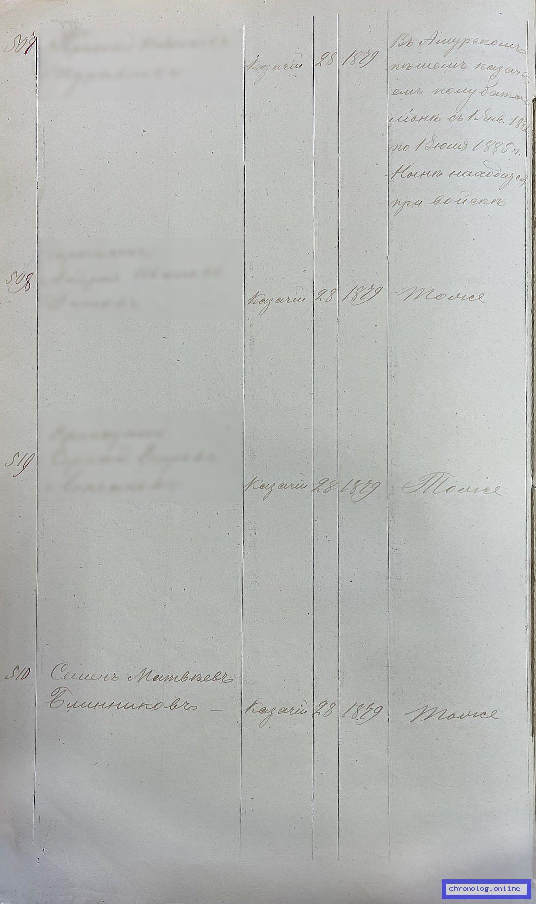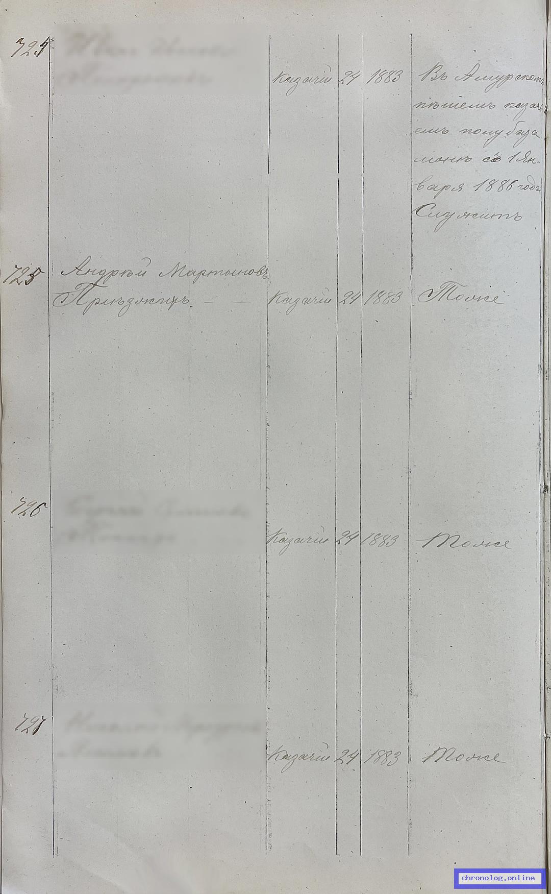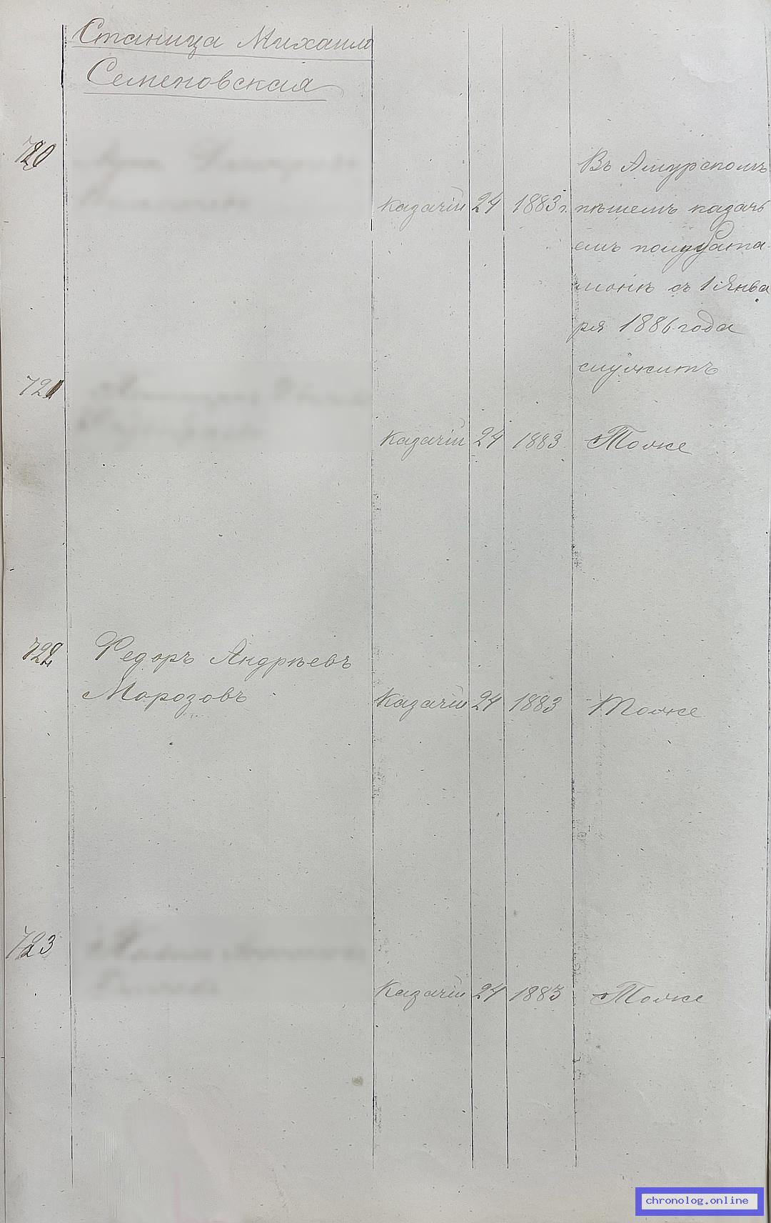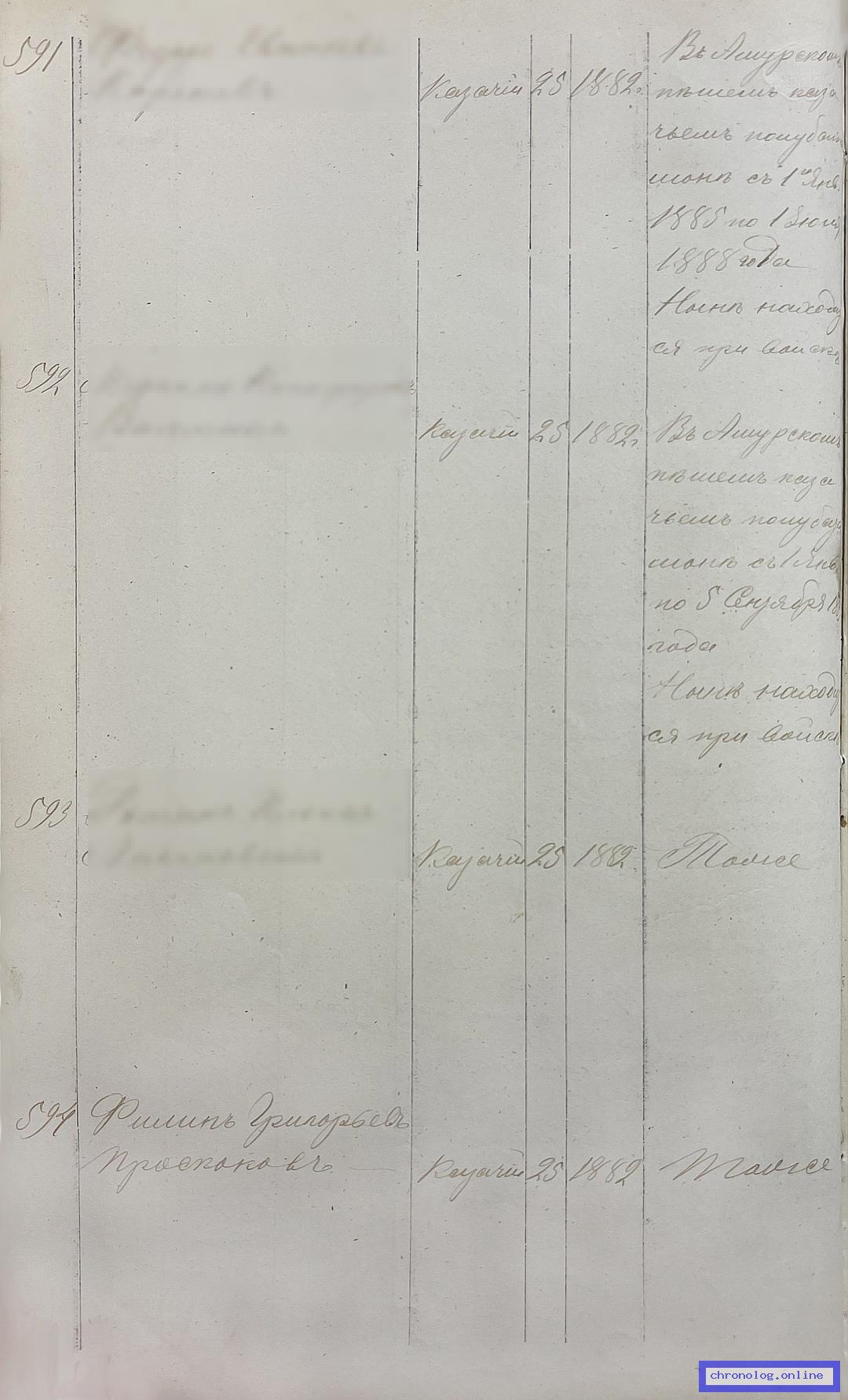 Приказы наказного атамана Амурского казачьего войска по личному составу Войскового правления о зачислении малолеток в приготовительный разряд, присвоении очередных званий и др. Именные списки малолеток и переселенных из Забайкальского войска