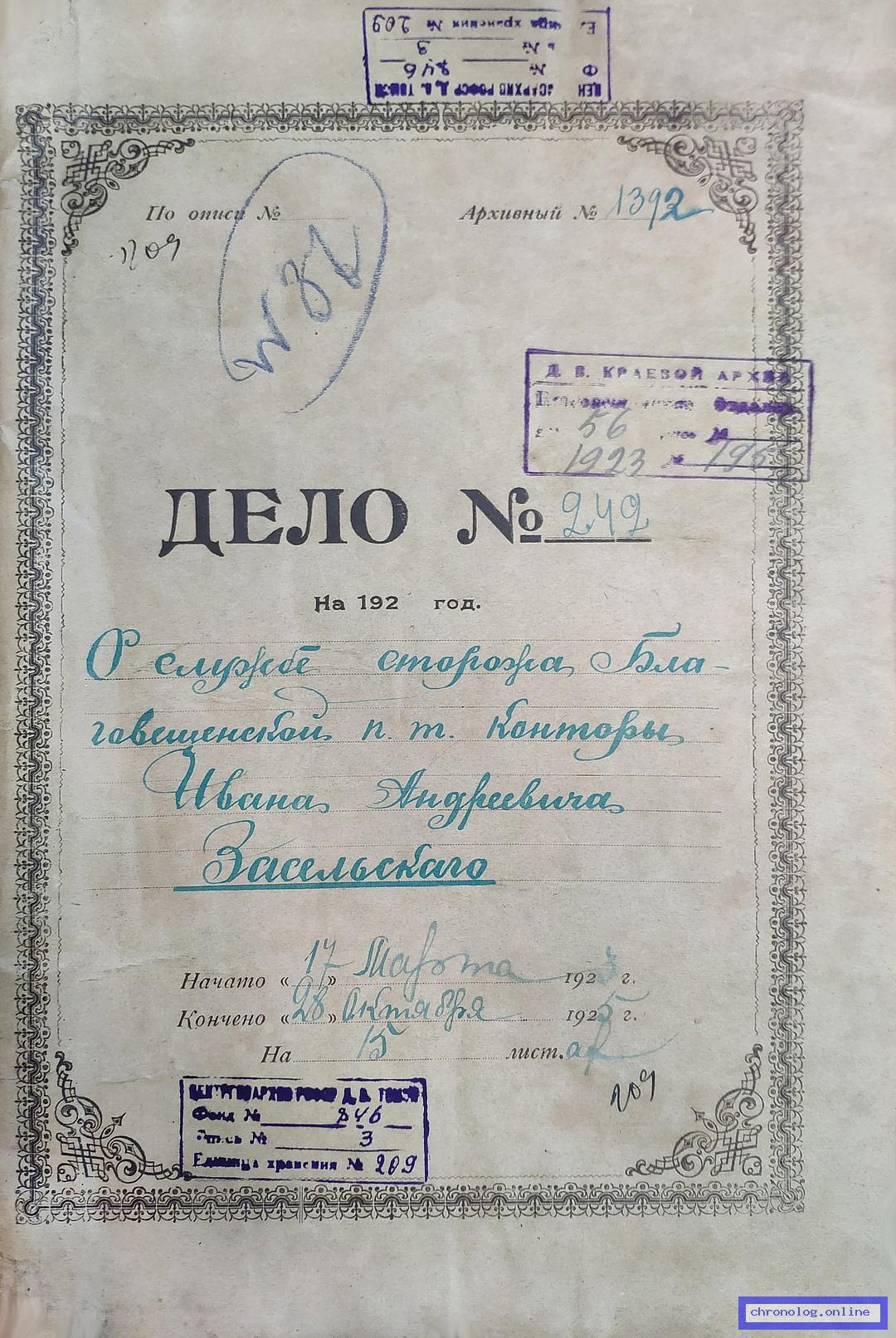 Описание отсутствует, шифр документа: РГИАДВ 846-3-23, ссылка на облачное хранилище отсутствует, число страниц не указано. Снимков у документа ещё нет - или .
