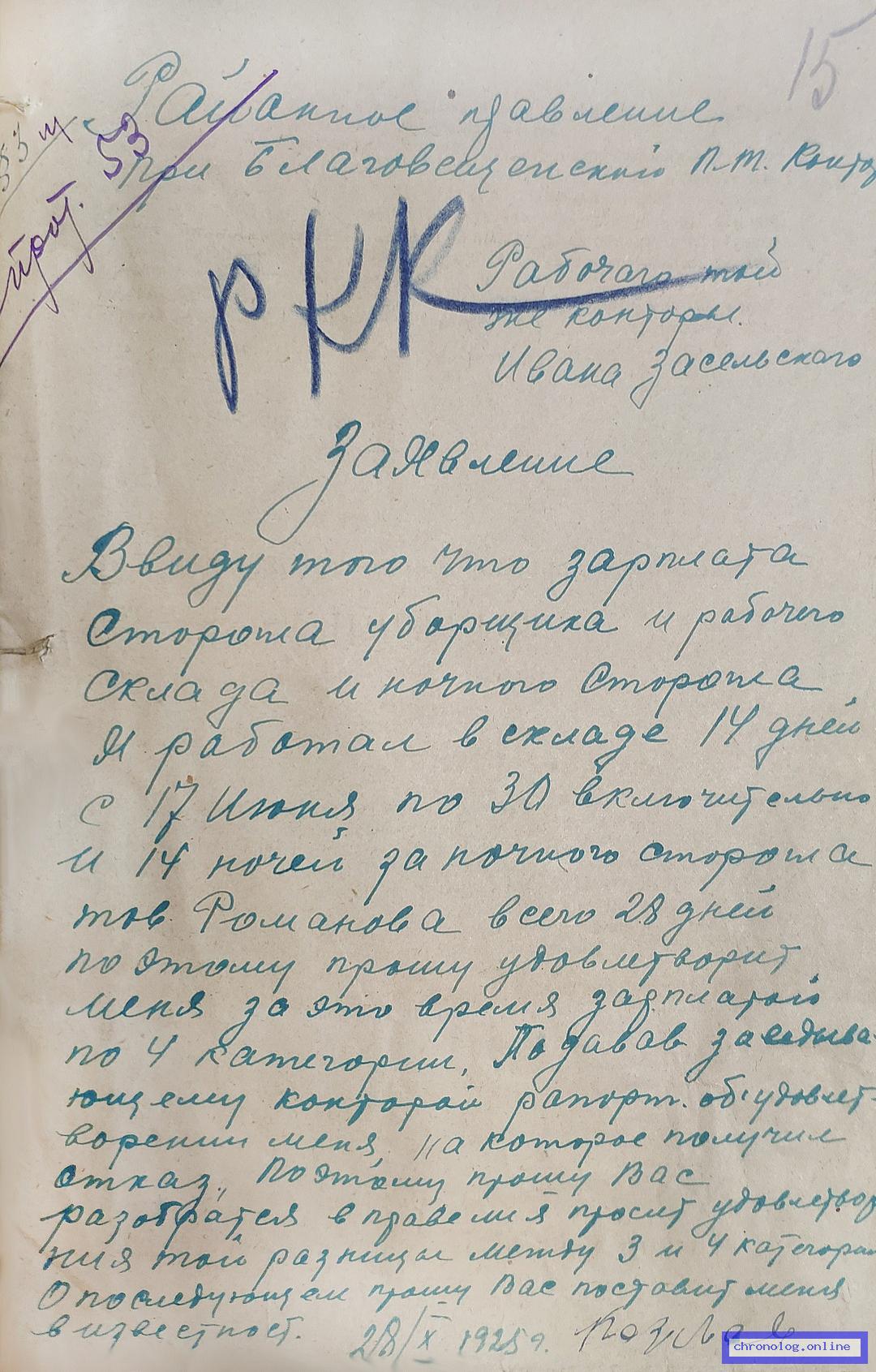 Сведения о службе почтальона Алексеева Н