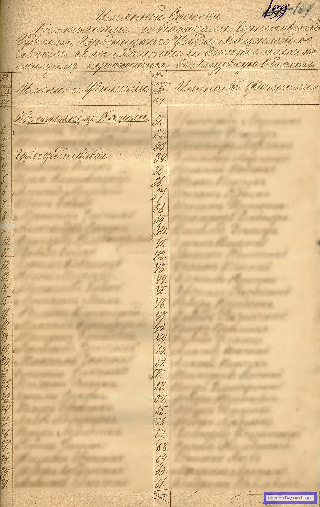 Общая ведомость делопроизводства по всем присутственным местам области. Списки крестьян и их семей, причисленных к селам Амурской области