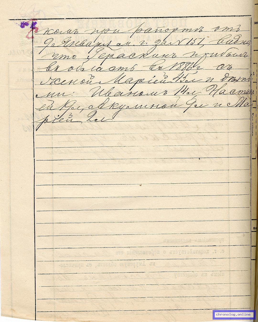 Переписка с Якутским областным правлением о выселении из Якутской области и причислении в Амурскую область тунгусских семей. Посемейный список тунгусов Кындигирского рода, причисленных в Амурскую область