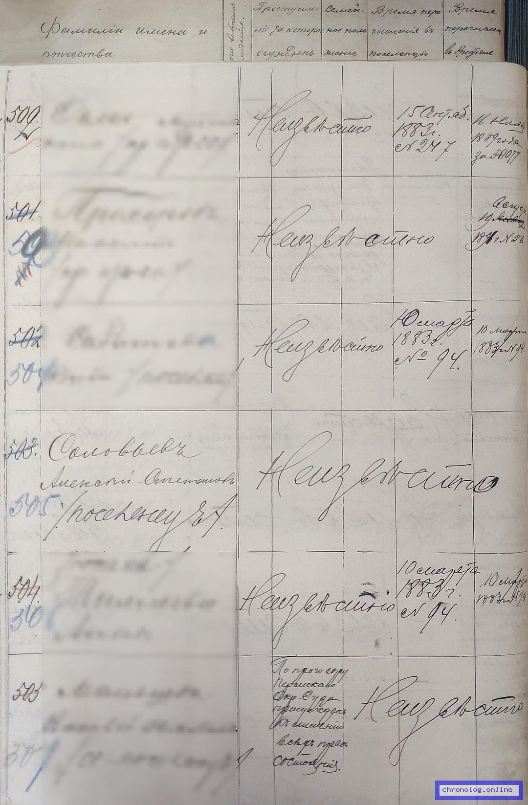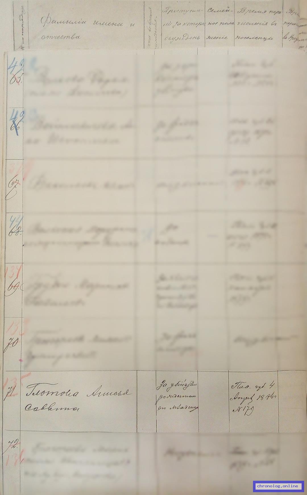 Документ 'Список ссыльных поселенцев, причисленных в Амурскую область в 1896 – 1899 гг.' (Амурская область, 20.09.1896 - 23.07.1899), число страниц: 110) представлен на платформе. Ссылка в Телеграме