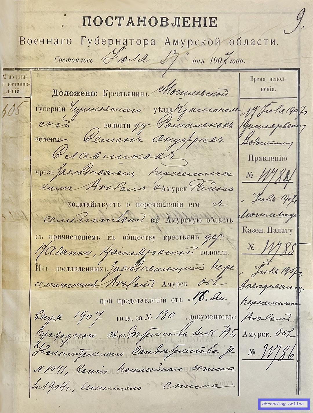 Документ 'Дело о причислении д. Казанки Краснояровской волости переселенца Славникова С. О.' (Амурская область, 12.06.1906 - 17.07.1907), число страниц: 10) представлен на платформе. Ссылка в Телеграме