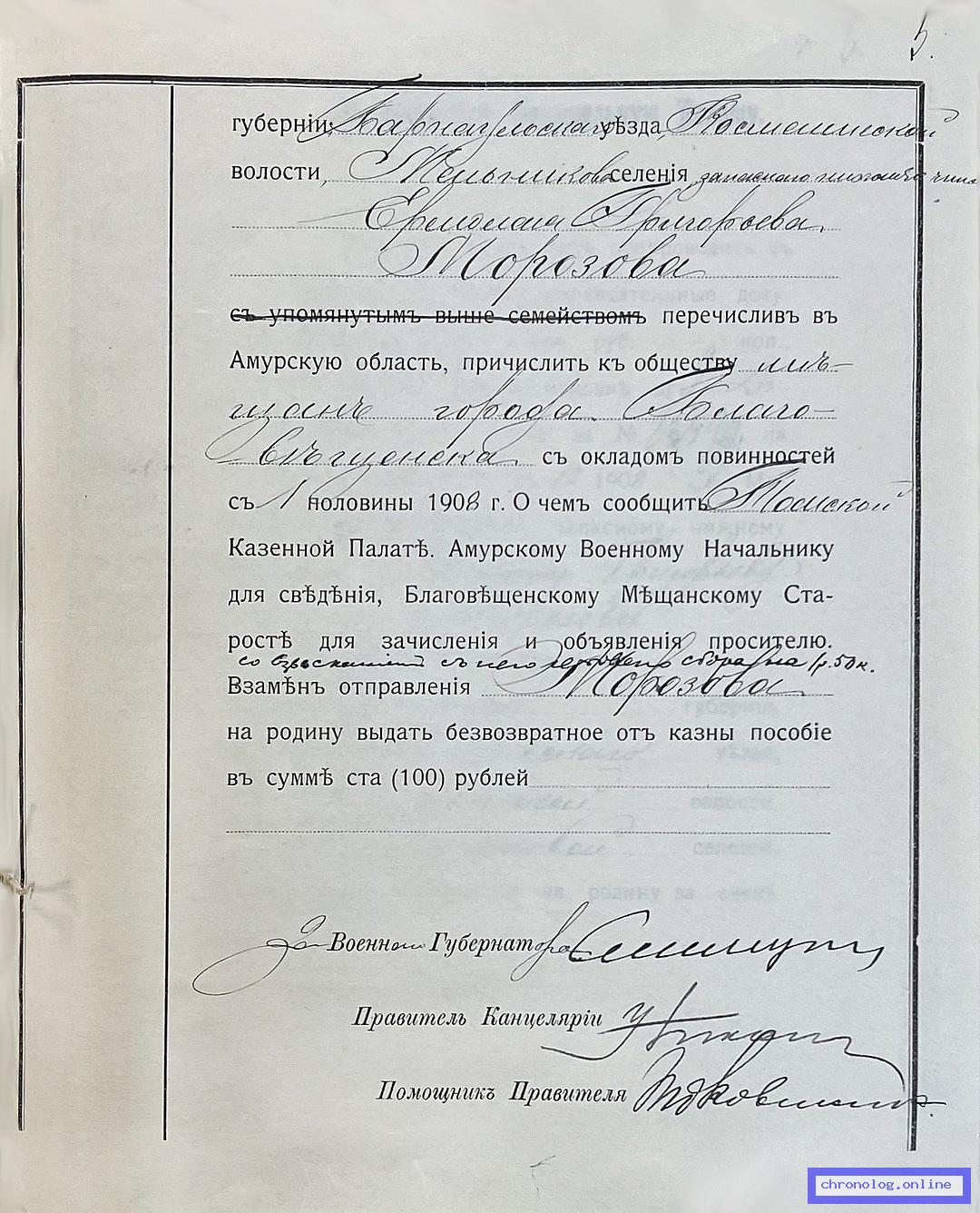 Документ 'Дело о причислении к сословию мещан г. Благовещенска уволенного в запас рядового Морозова Е.Г.' (Амурская область, 17.11.1908 - 31.12.1908), число страниц: 7) представлен на платформе. Ссылка в Телеграме