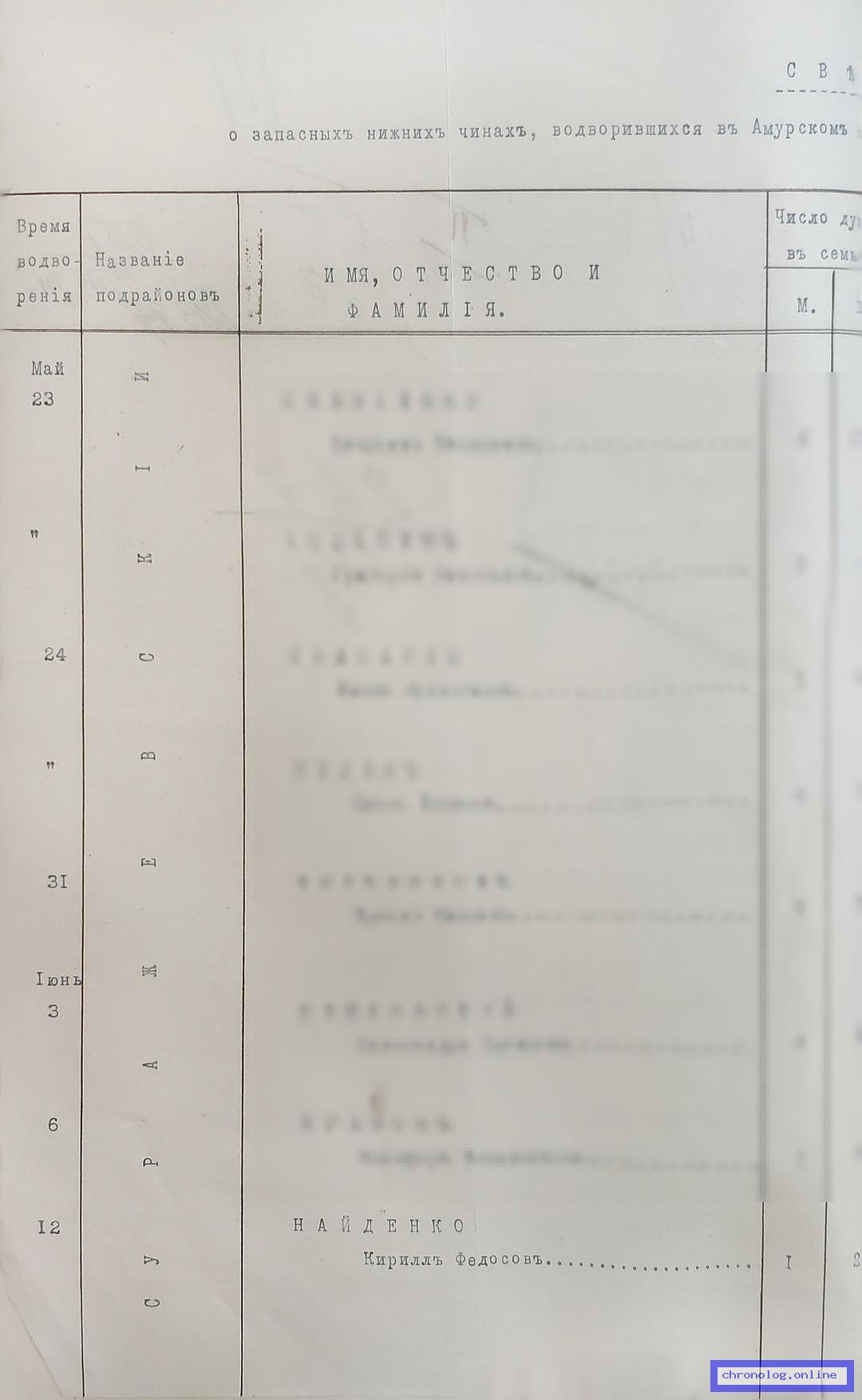Документ 'Список запасных солдат причисленных в Амурскую область за 1911 год.' (Амурская область, 2.05.1911 - 6.03.1912), число страниц: 46) представлен на платформе. Ссылка в Телеграме