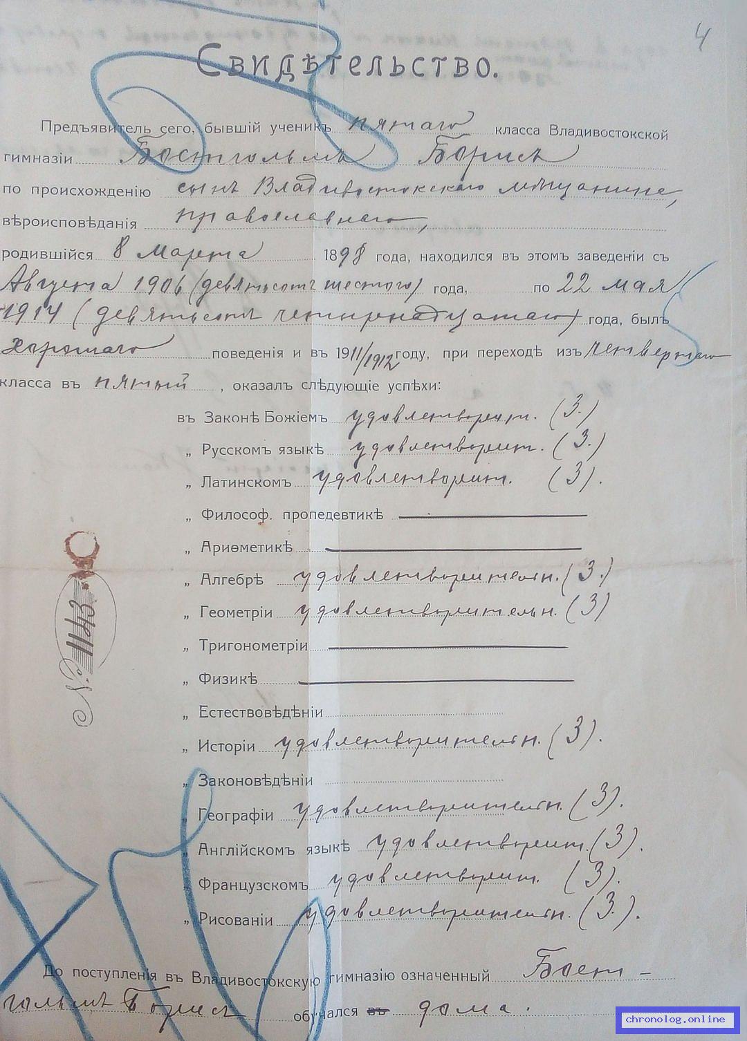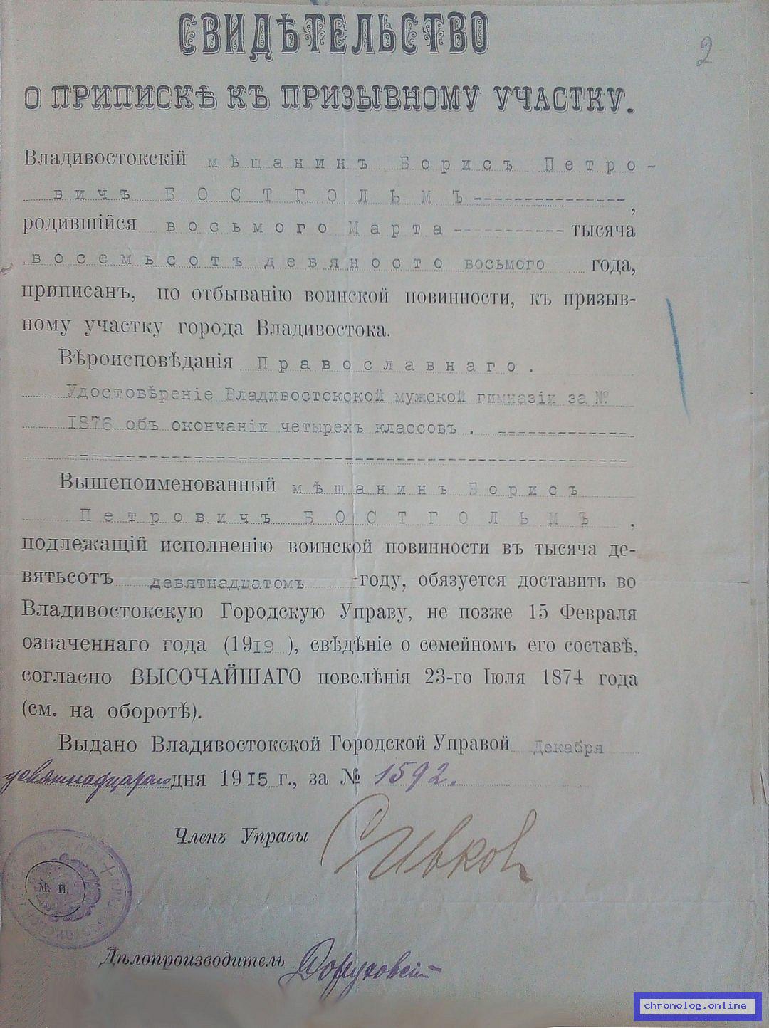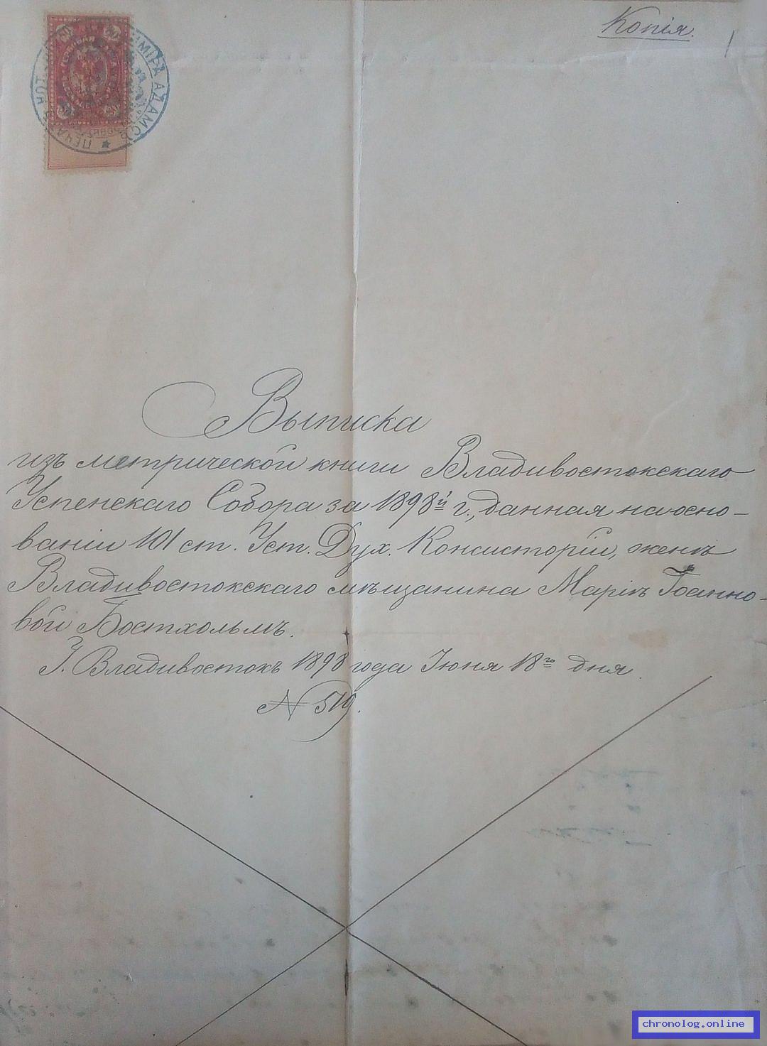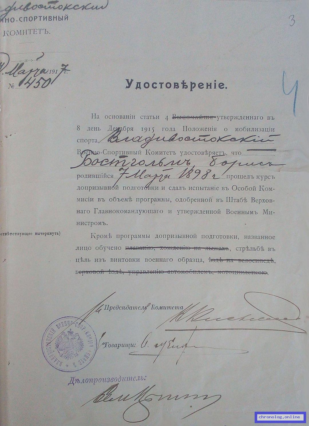 Документ 'Бостгольм Борис Петрович' (город Владивосток (Приморская область), 1898), число страниц: 4) представлен на платформе. Ссылка в Телеграме
