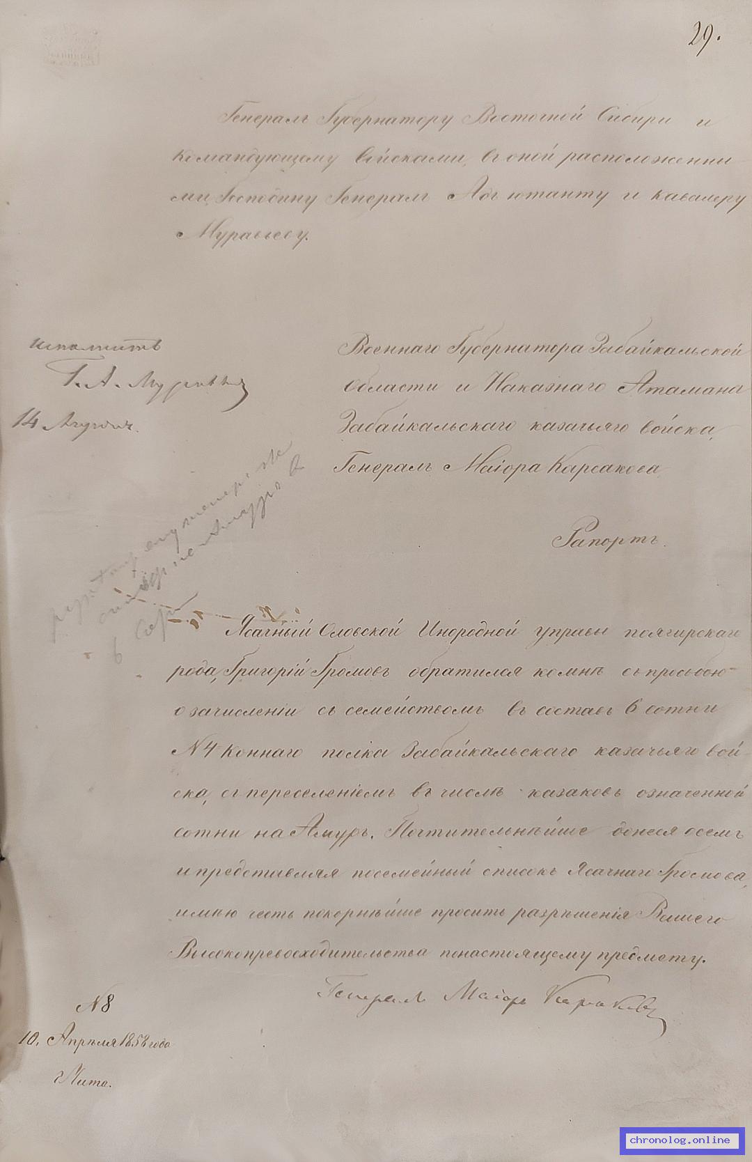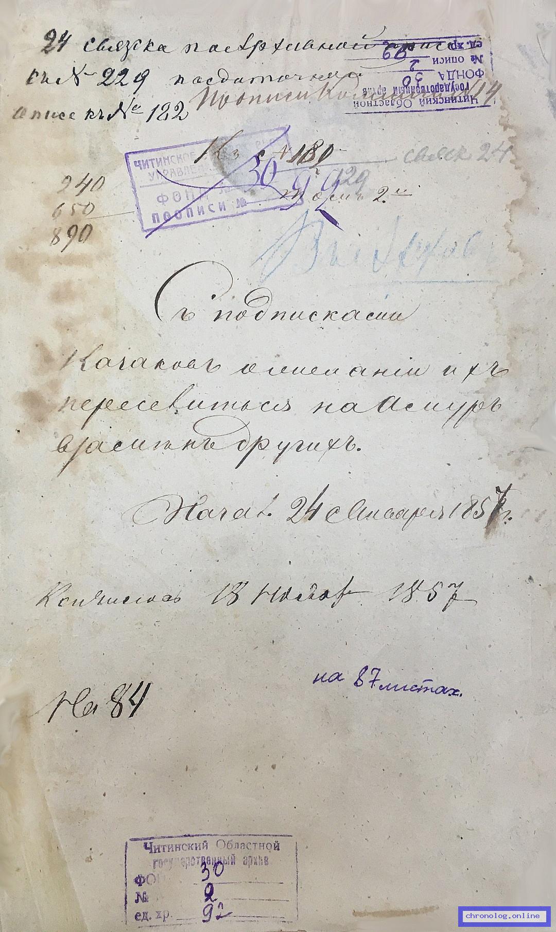 Документы о Формировании Сводного батальона для караулов на Нерчинских заводах