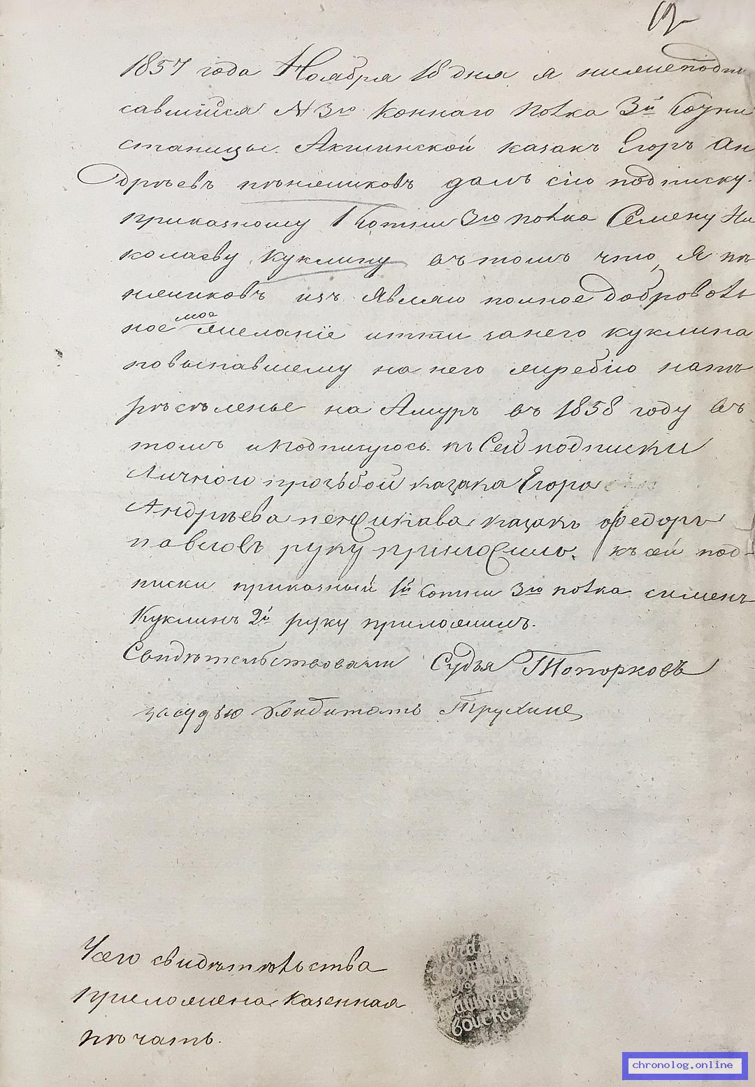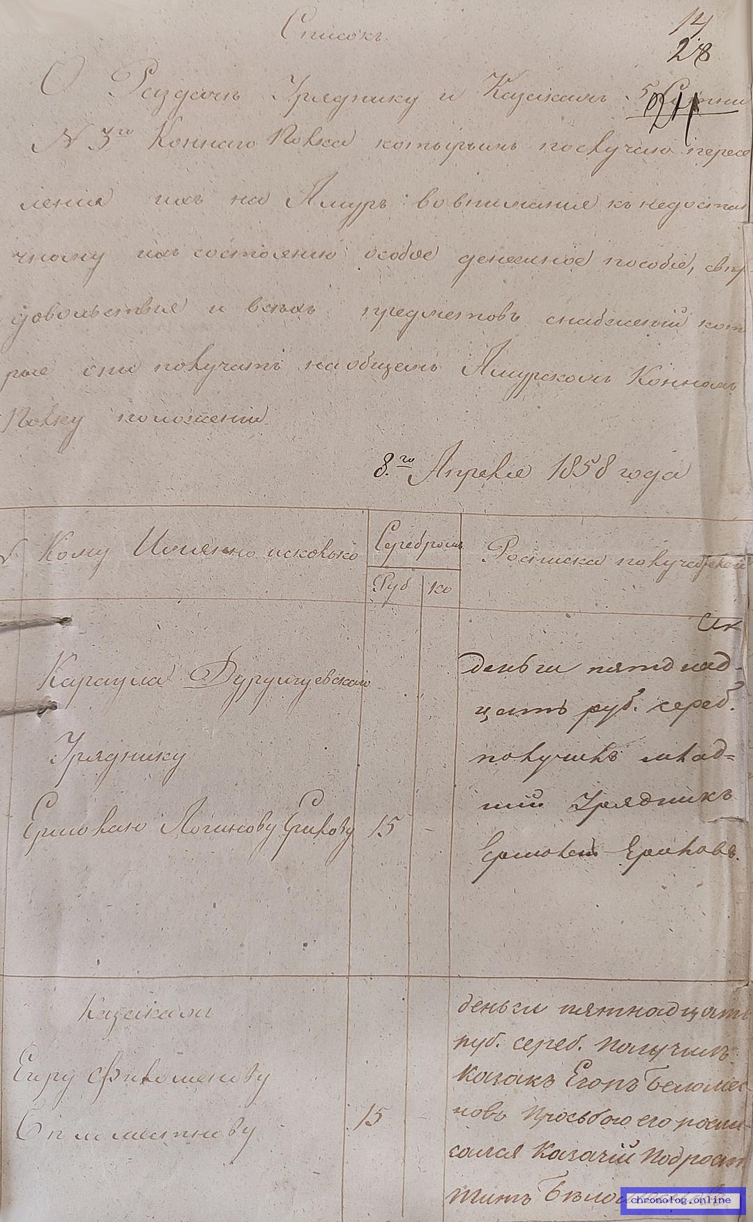 Отчёт по гражданскому управлению Пешего № 4 батальона Забайкальского казачьего войска за 1852 год, материалы к нему