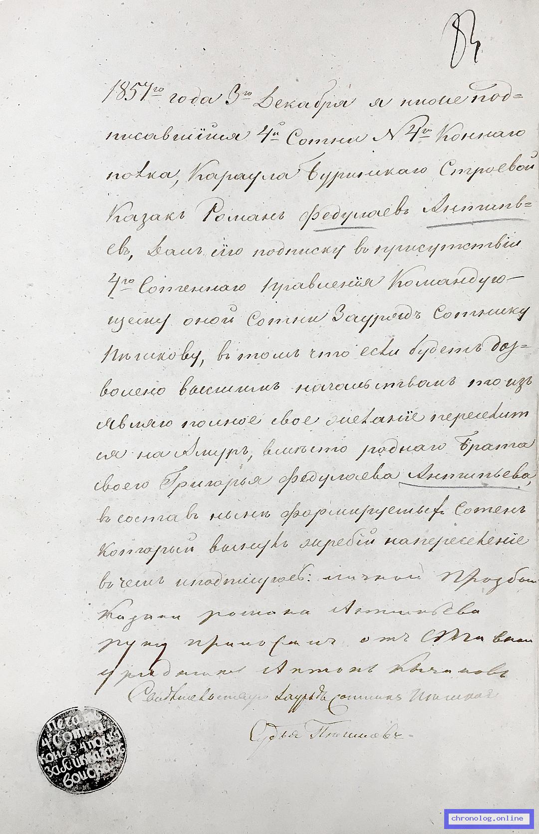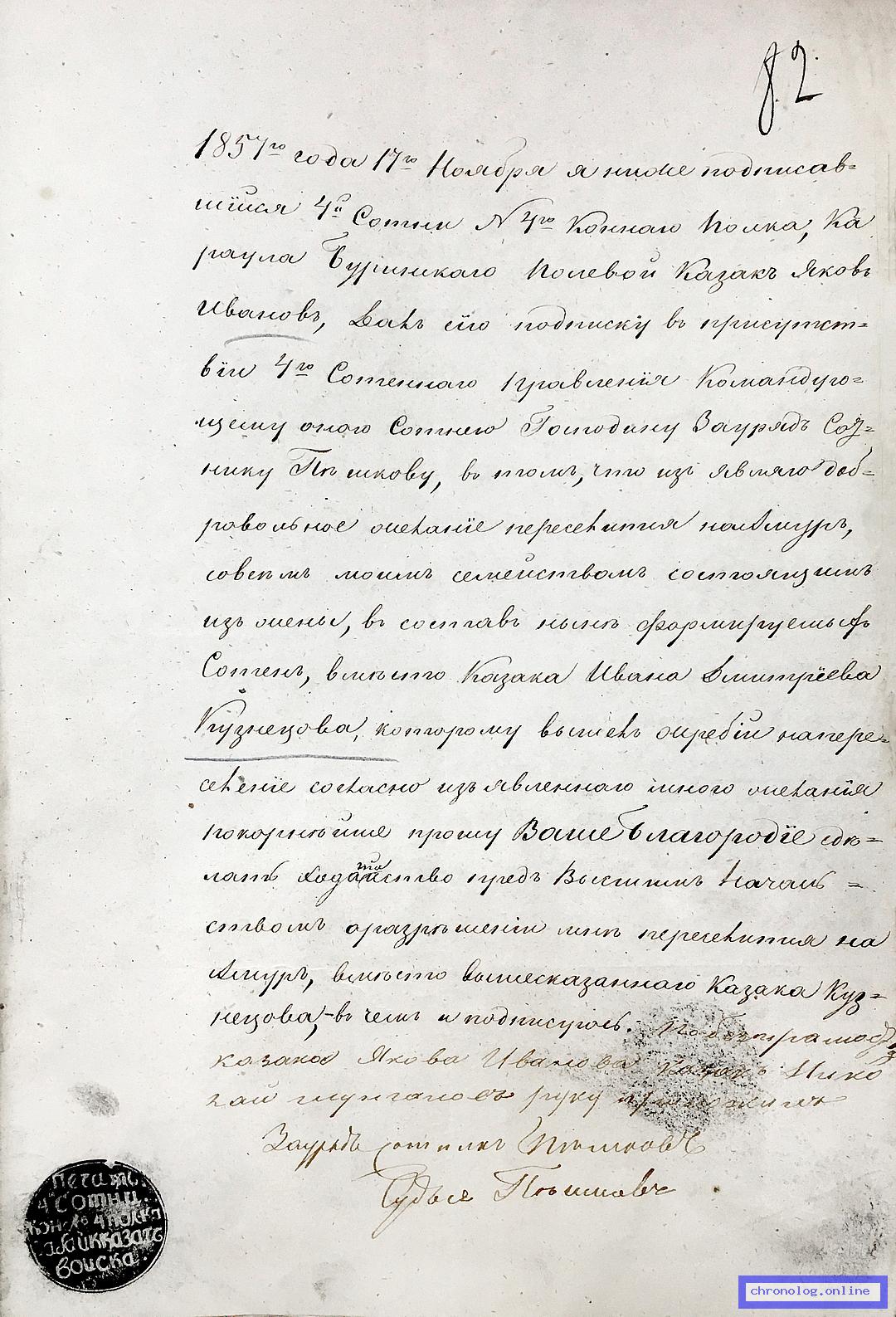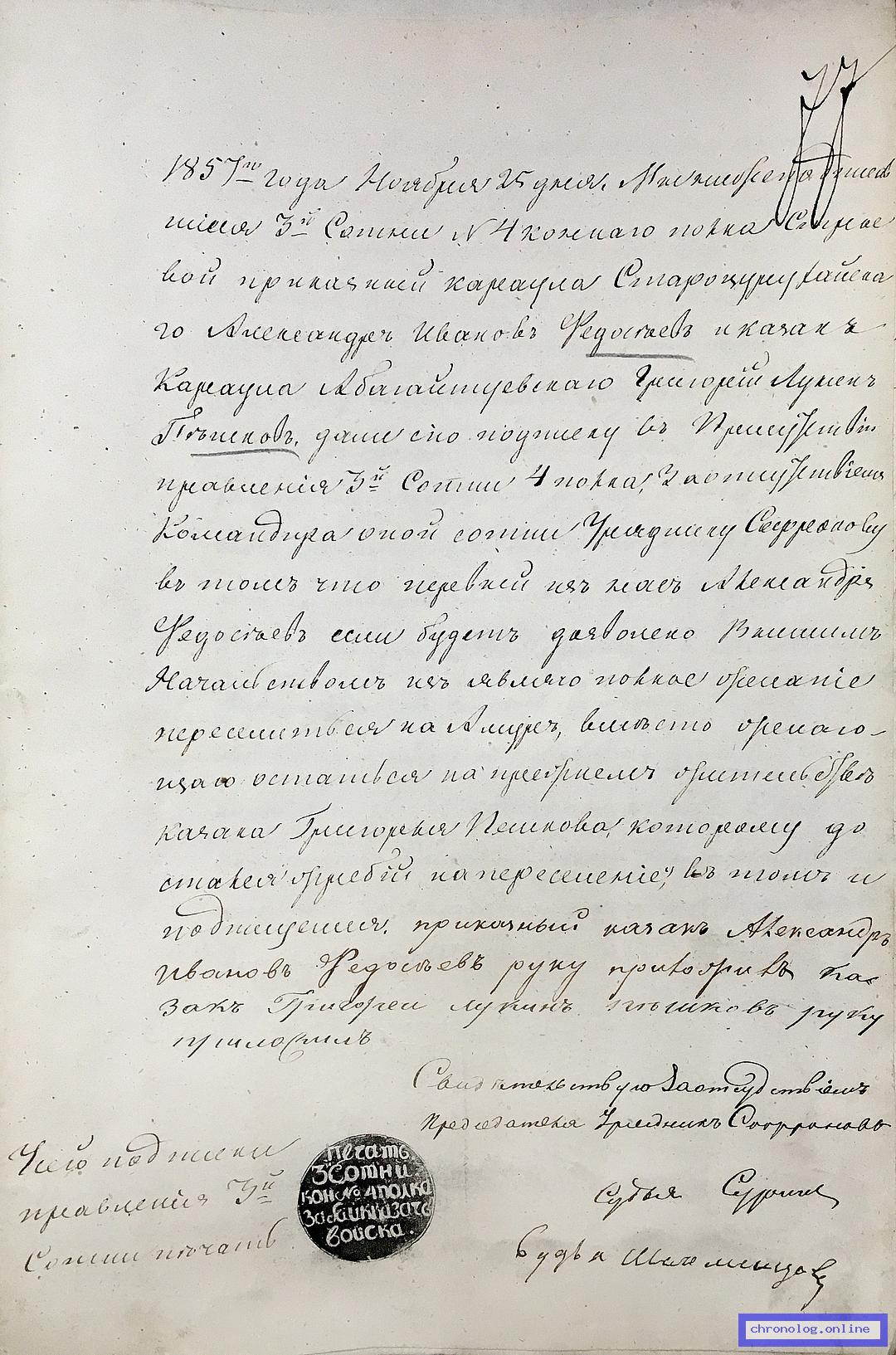 Рапорты казаков Командующему Пешим № 4 батальоном