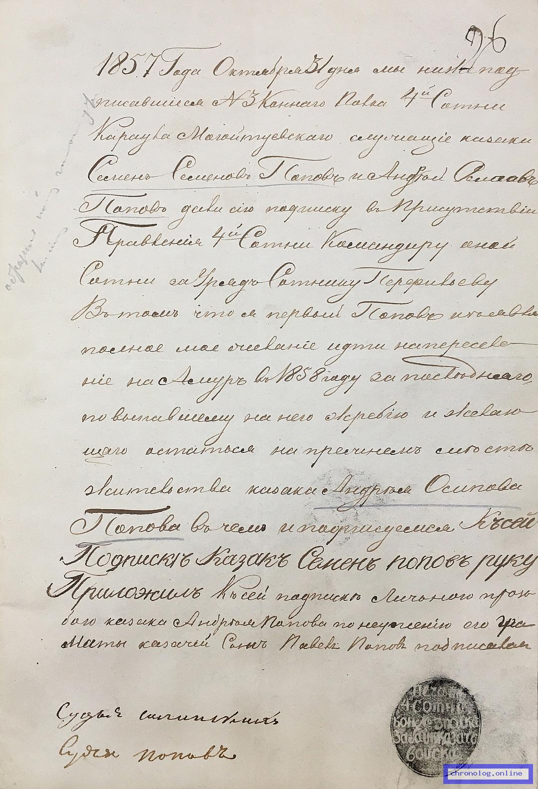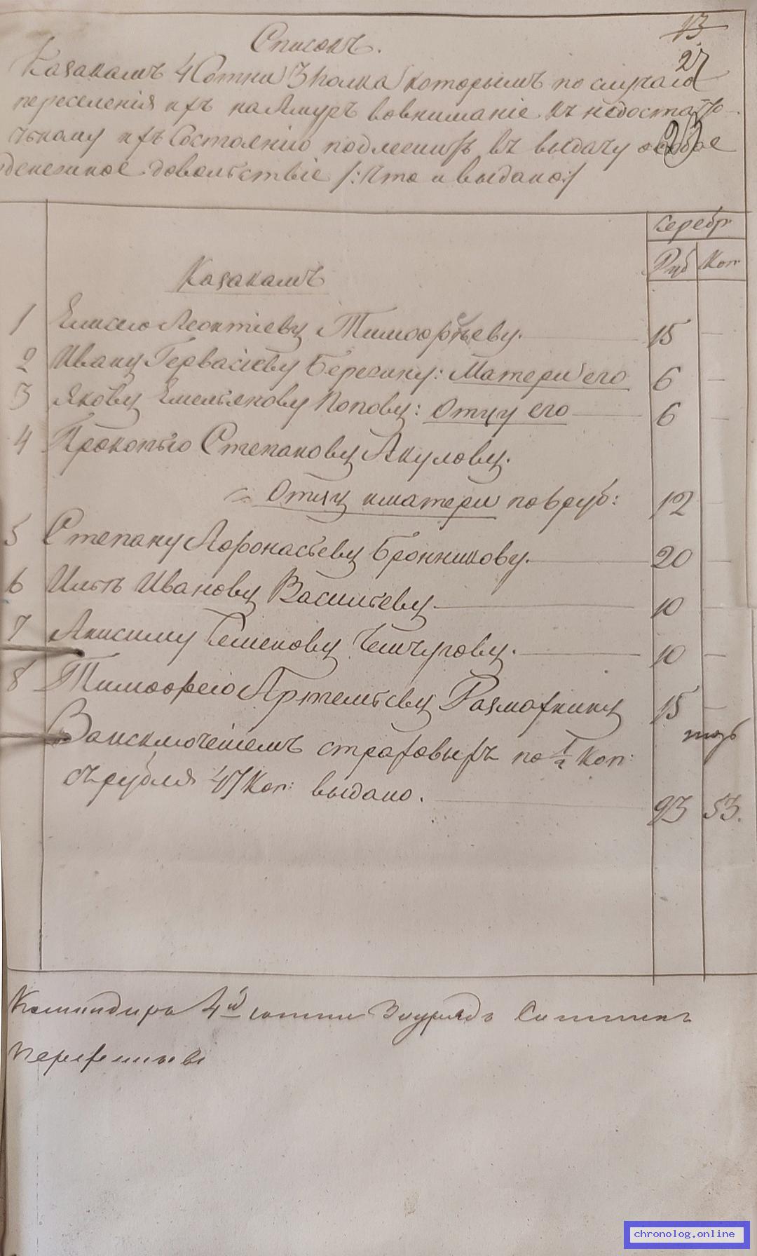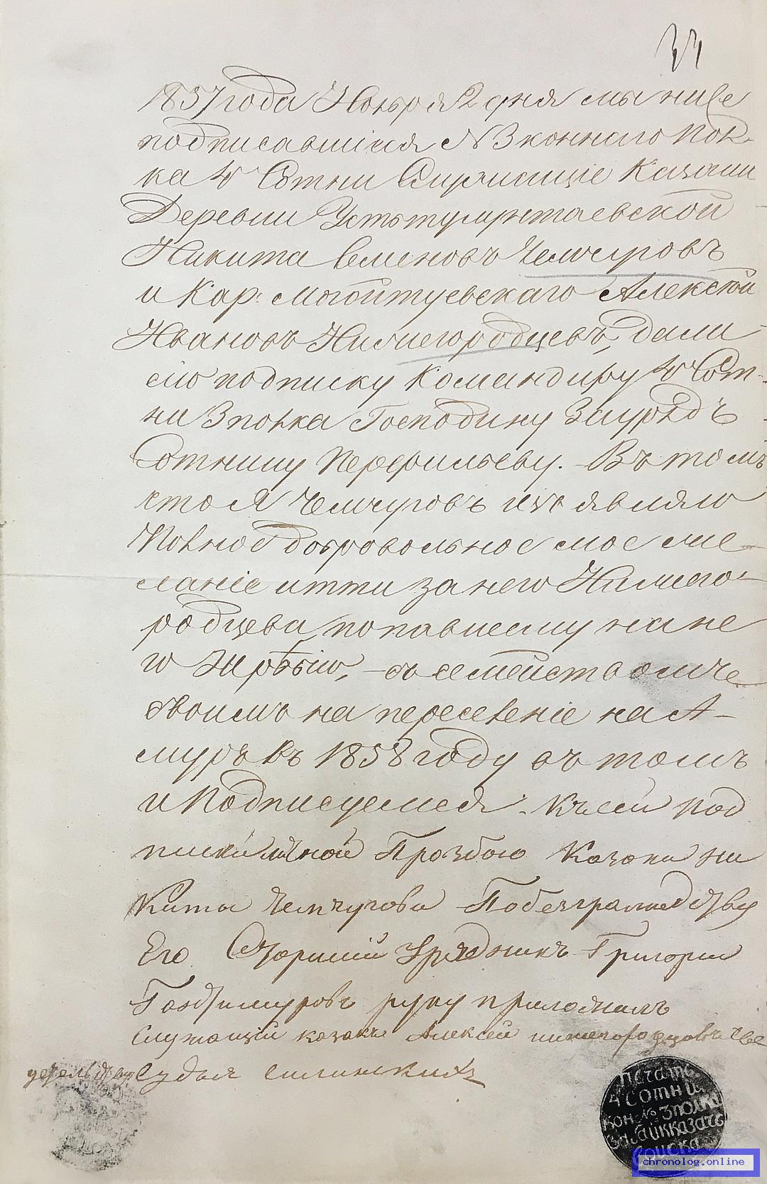 Рапорты казаков Командующему Пешим № 4 батальоном