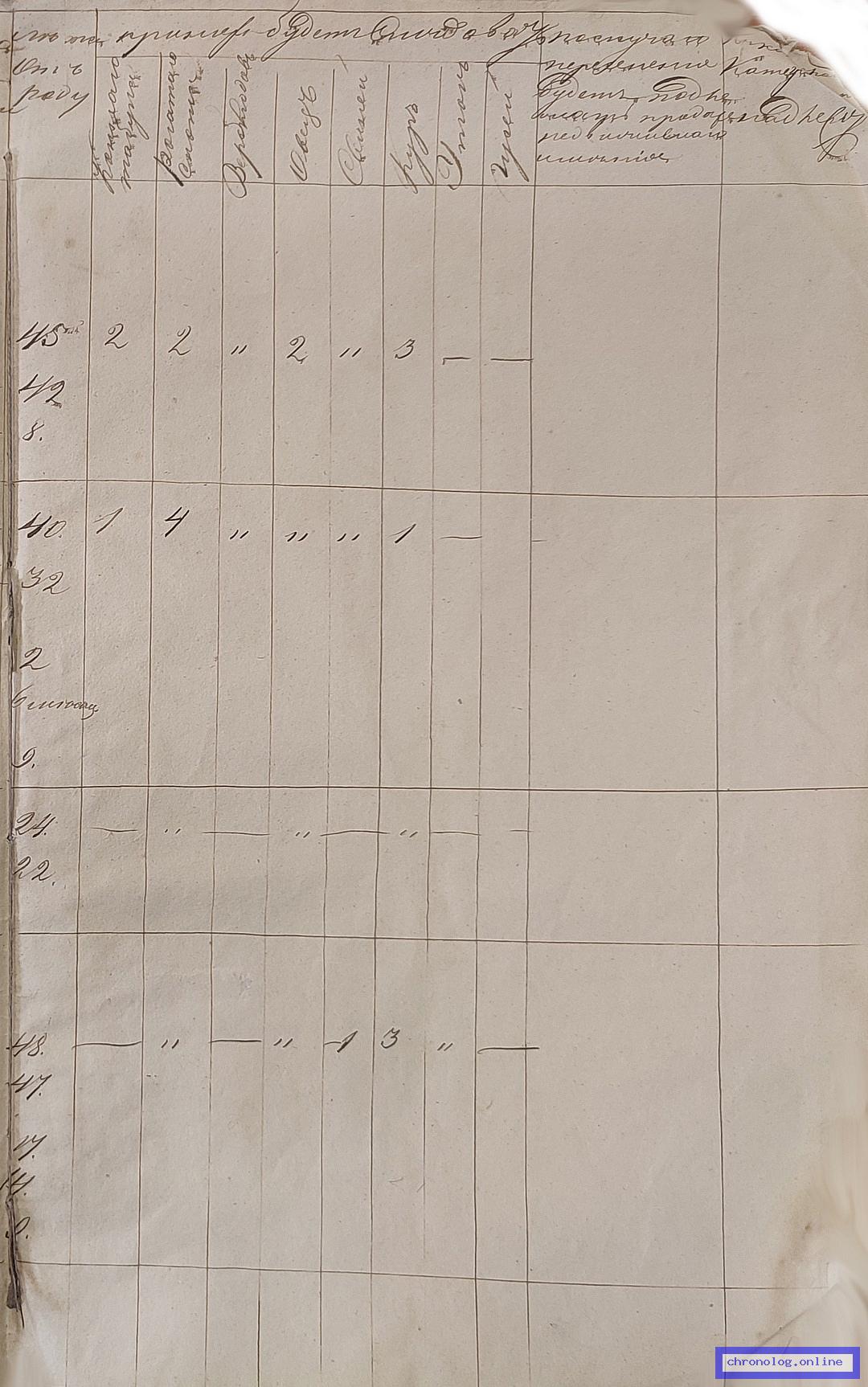 Ведомости Пешего № 4 батальона о запашке земель, урожае хлебов, сдаче хлеба в экономические магазины
