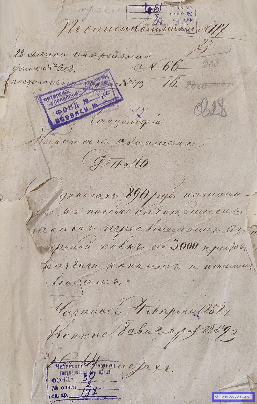 Указания Забайкальского войскового хозяйственного правления. Рапорты батальонных правлений в Правление 3-й пешей бригады Забайкальского казачьего войска о расходе денег, заготовке провианта