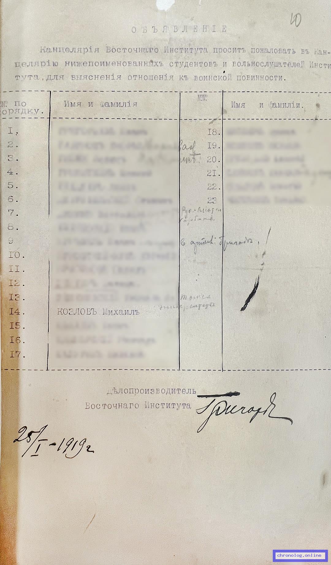 Документ 'Список студентов и офицеров-слушателей Восточного института в 1910 году' (город Владивосток (Приморская область), 1910, 1917), число страниц: 26) представлен на платформе. Ссылка в Телеграме