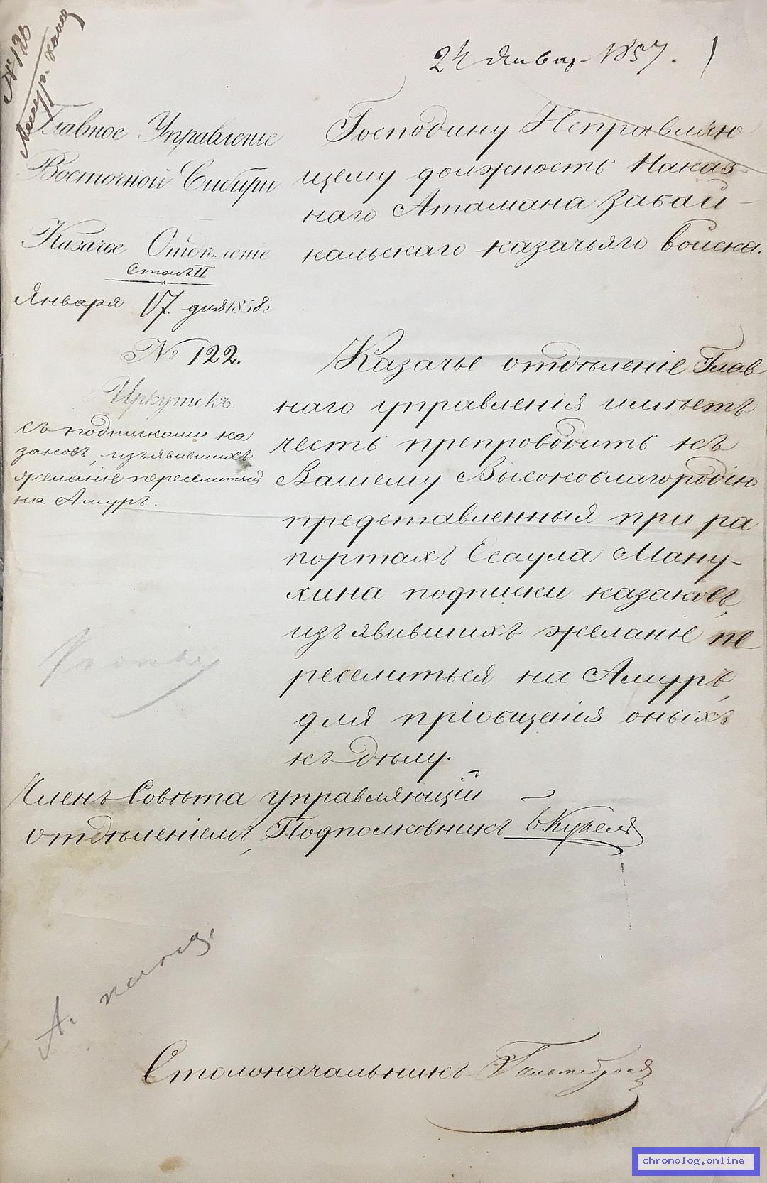 Документ 'С подписками казаков о желании переселиться на Амур' (Без указания (Амурская область), 24.01-18.11.1857), число страниц: 87) представлен на платформе. Ссылка в Телеграме