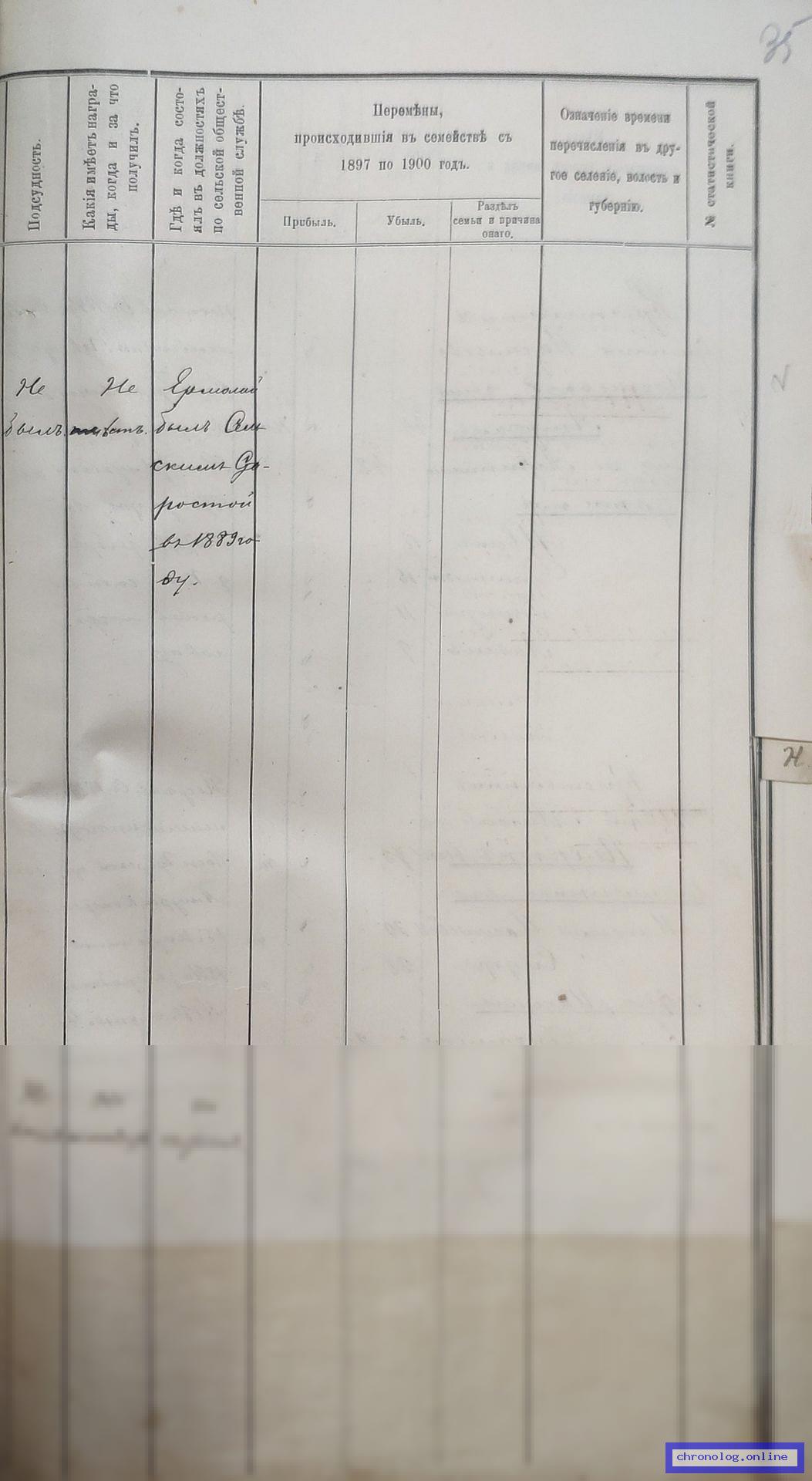 РГИАДВ 704-4-704, Л.55об., 56 (Списки крестьян деревни Петропавловки на 1897 год): Осип Семёнович Худолей 41 лет. У него жена Дарья 34 лет, дети: Сергей 14 лет, Сидор 5 лет, Григорий 2 года 3 месяца, Макрида 9 лет, Евдокия 7 лет. Исход: деревня Петропавловка Старобельского уезда Харьковской губернии. Снимки: 55об, 56. | |||