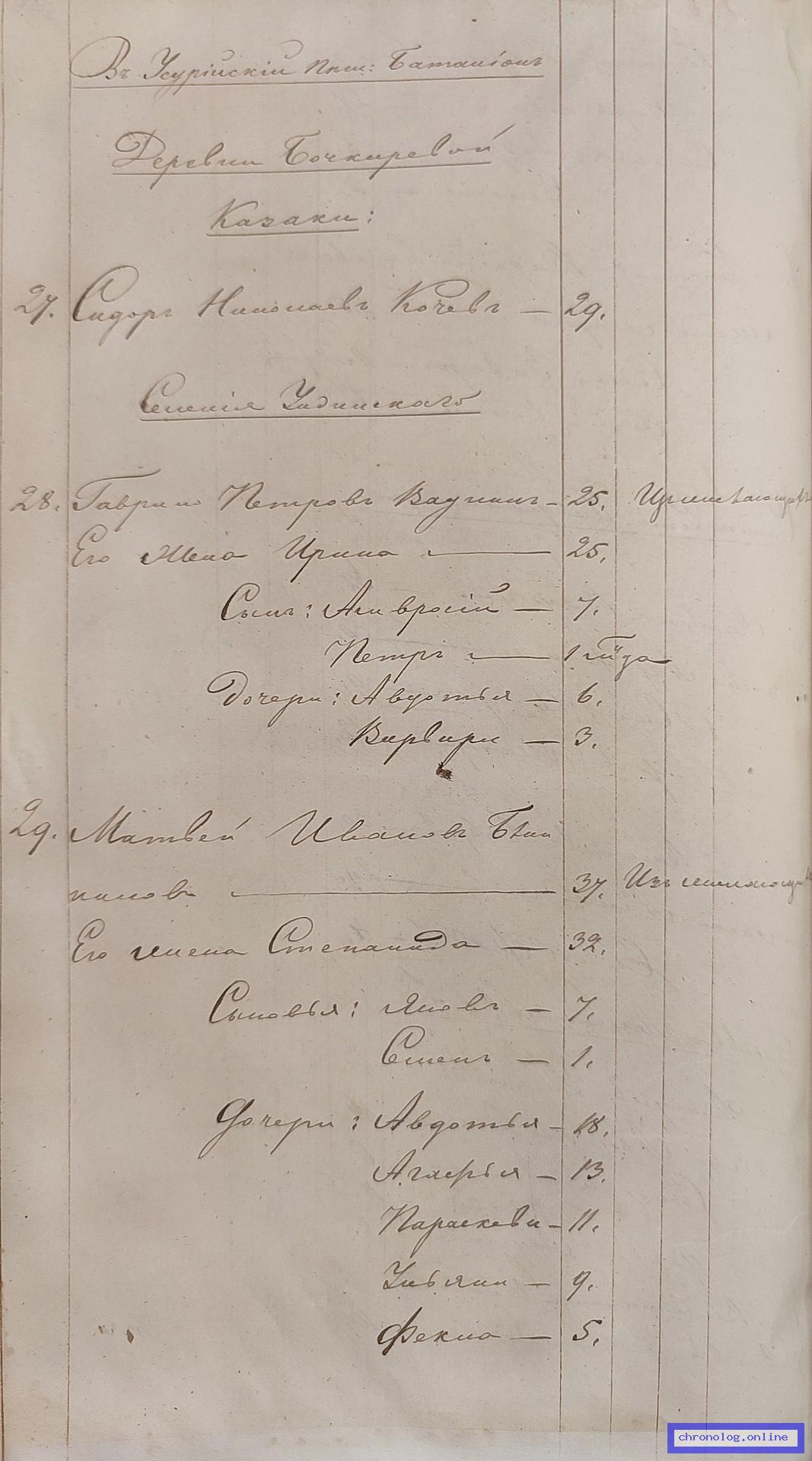 ГАЗК 30-2-270, Л.107об, 108, 233об (Посемейные списки переселенцев на р. Амур): Казак 10-го пешего батальона Семён Нестерович Толстоногов 21 его жена Степанида 21 брат Афонасий 16 сёстры Устинья 11 Лепестинья 6 их отец Нестер 66 его жена Устинья 47. Исход: деревня Галкина-Горекинская Нерчинского уезда. Снимки: 107об, 108, 233об. | |||