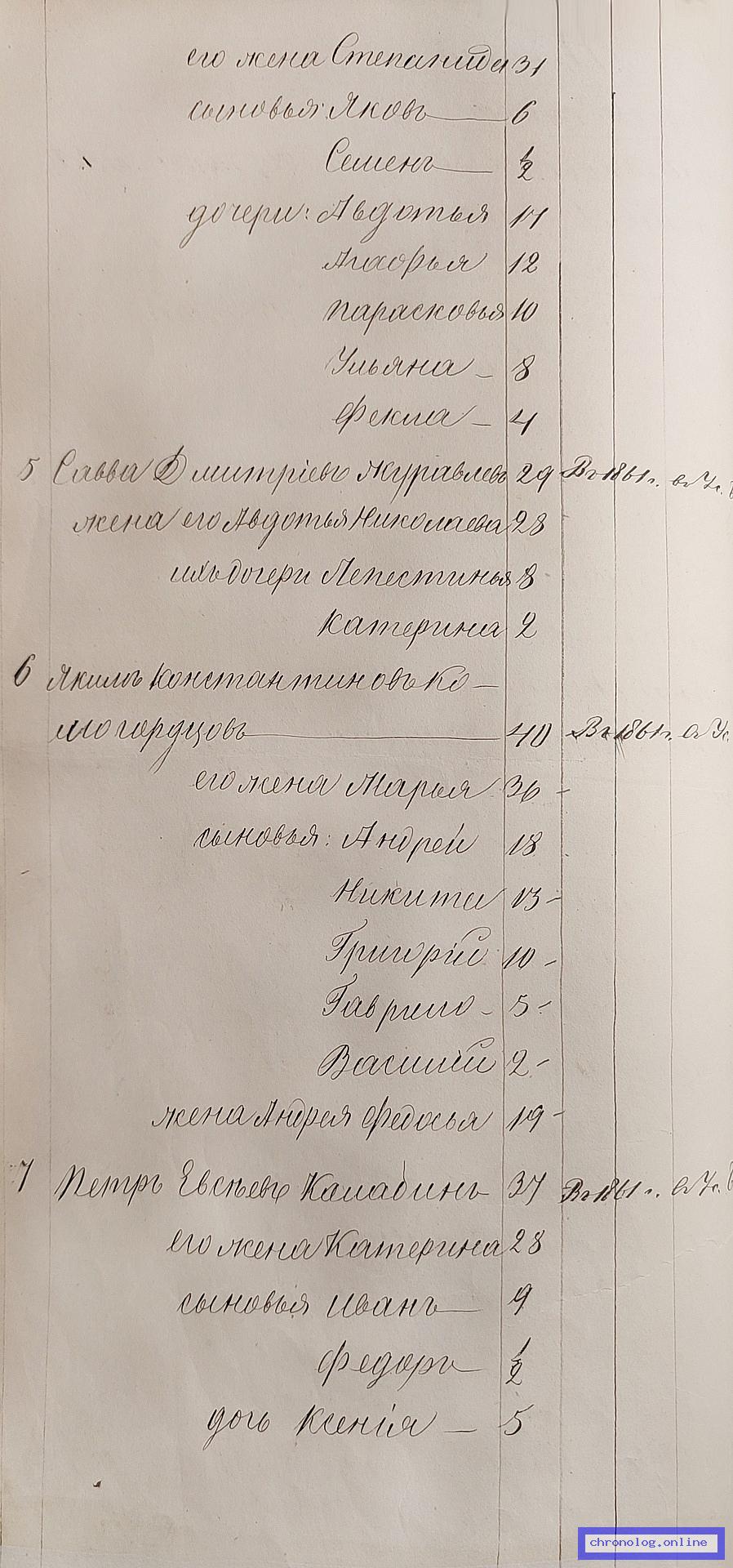 ГАЗК 30-2-270, Л.101, 141об, 226 (Посемейные списки переселенцев на р. Амур): Казак 10-го пешего батальона Михайло Кононович Соловьёв 35 его жена Дарья 38 сын Анисим 8 дочь Афимья 14. Исход: деревня Усть-Ононская Нерчинского уезда. Снимки: 101, 141об, 226. | |||