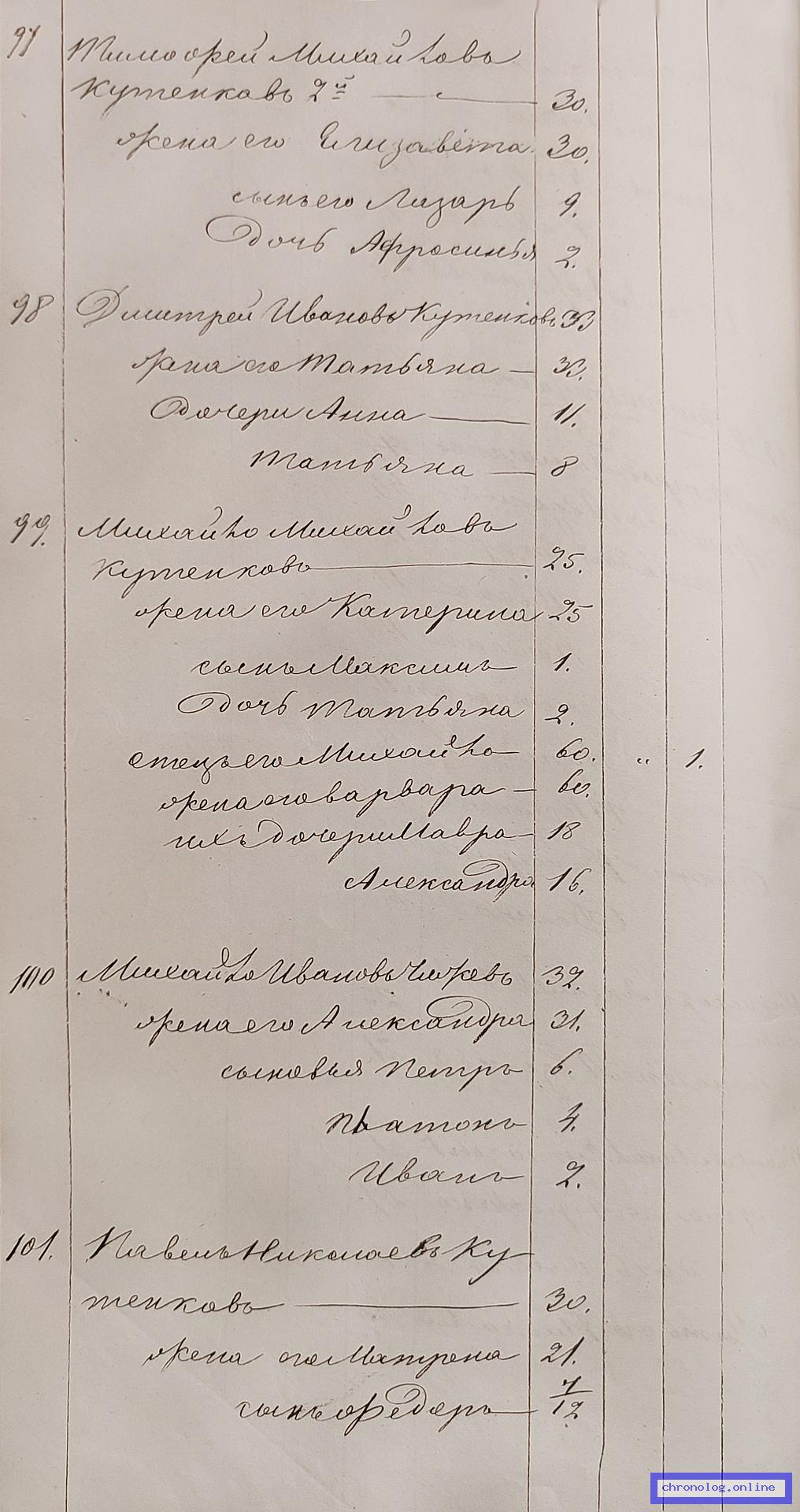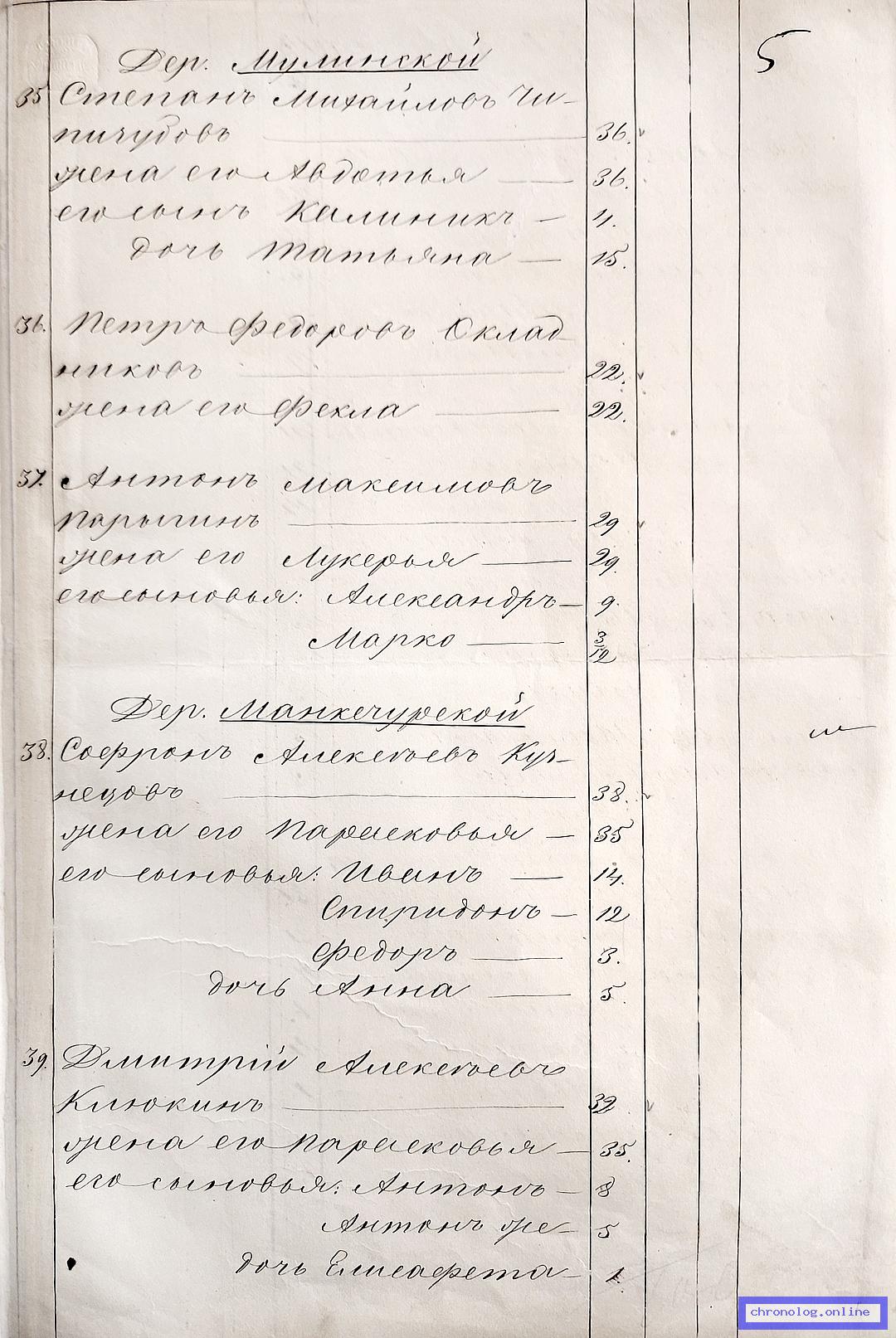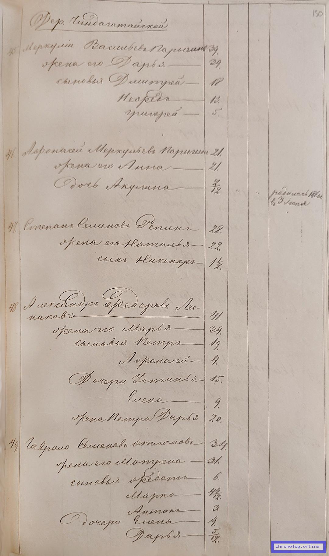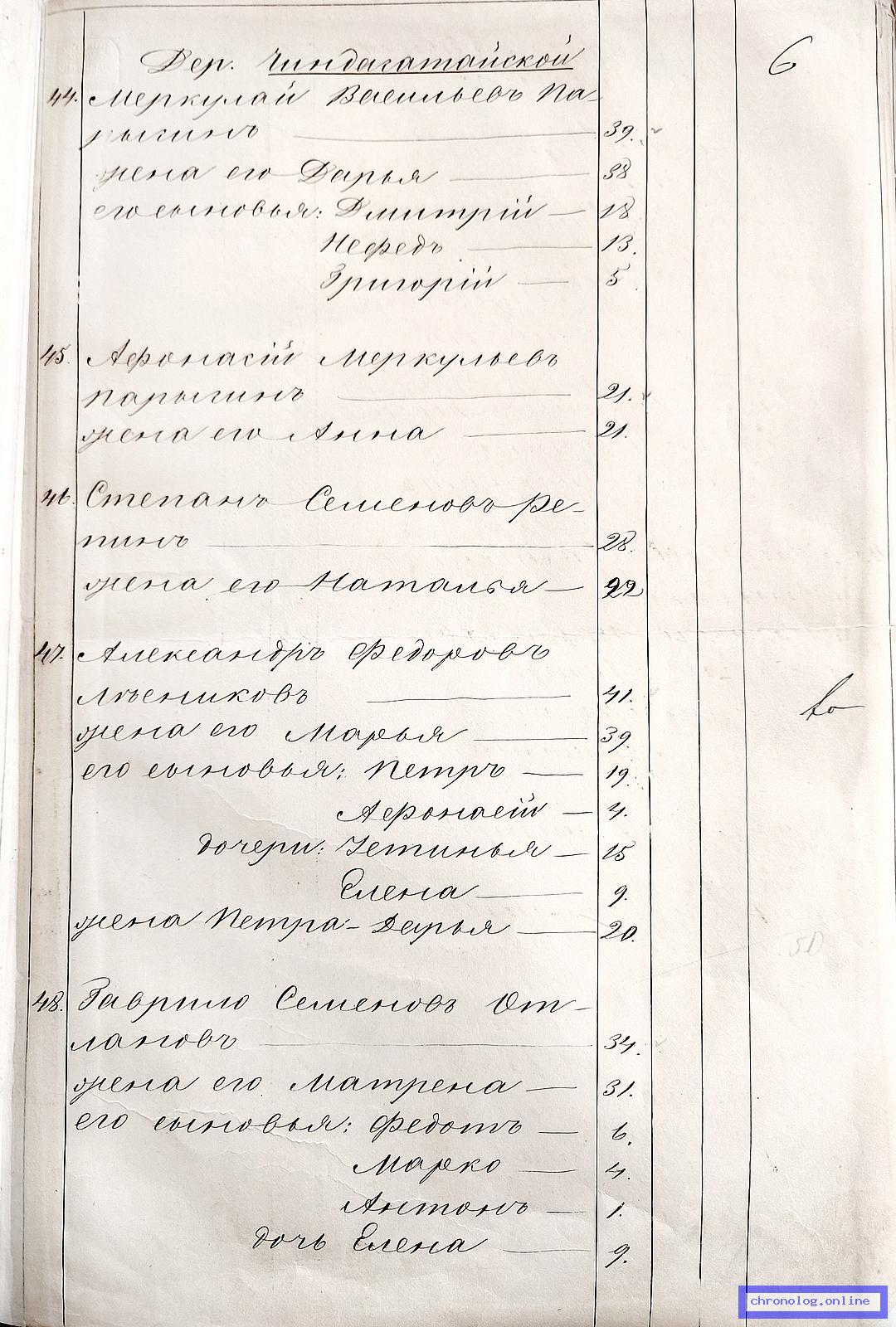 ГАЗК 30-2-270, Л.5, 149 (Посемейные списки переселенцев на р. Амур): Казак 1-го пешего батальона Степан Михайлович Чипизубов 36 жена его Авдотья 36 сын Капитон 4 дочери Татьяна 15 Елена 3 месяца. Исход: деревня Мулинская Нерчинского уезда. Снимки: 5, 149. | |||