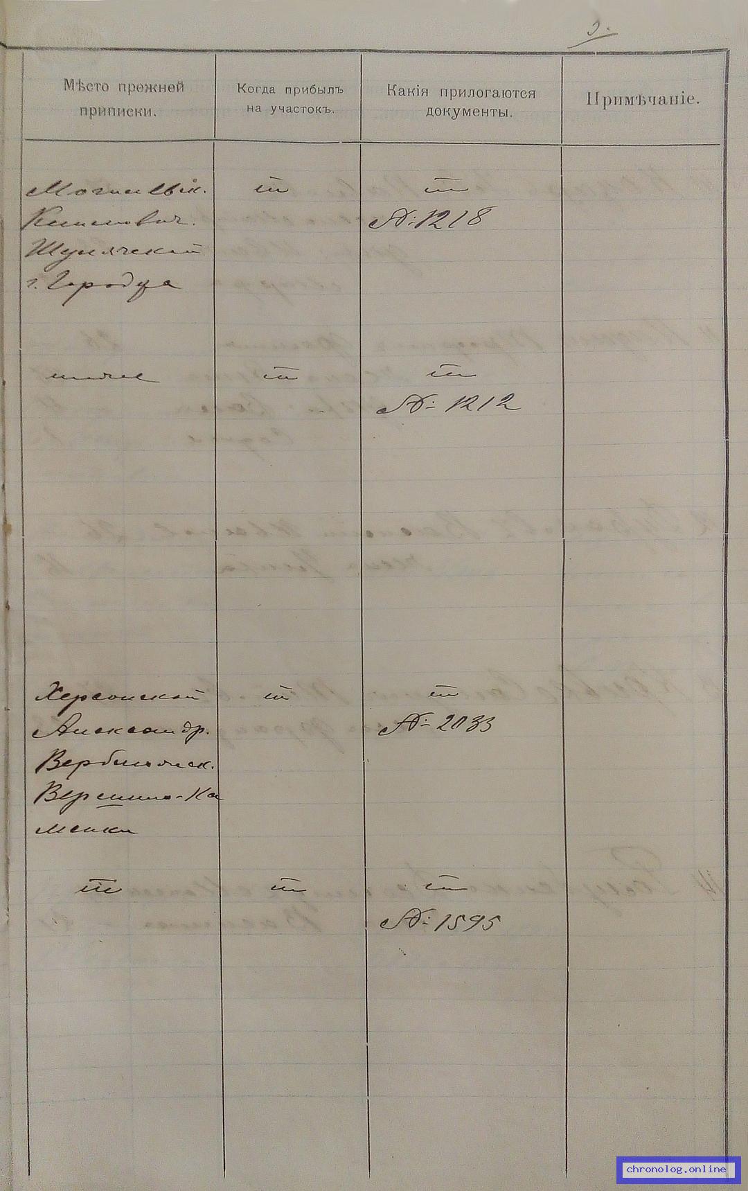 Поскольку Дальний Восток с середины XIX века испытывал серьёзный приток переселенцев как с территорий многих российских губерний, так и из ближайшего зарубежья, в проходных свидетельствах и иных документах были записаны наименование родного села или деревни, волости, уезда или страны откуда прибывал человек. Наличие или отсутствие данных о месте исхода показано в колонке "Документ".