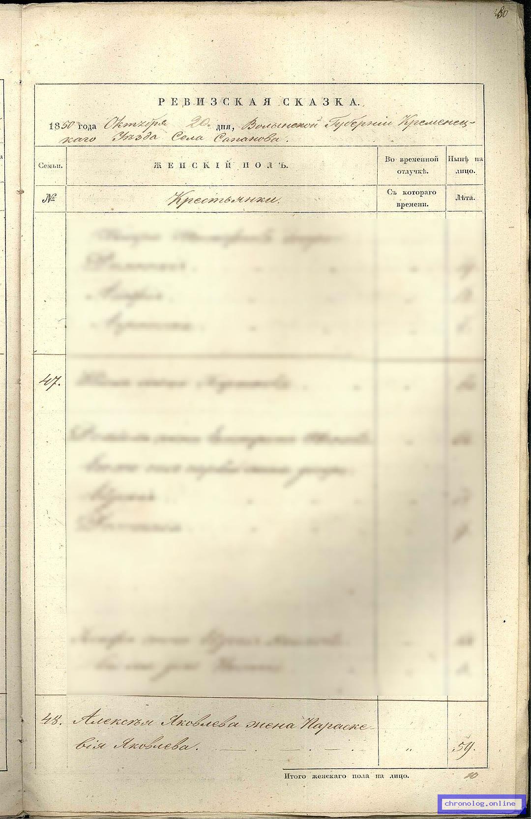 ГАТО 37-2-178, Л.329об., 330 (Ревизская сказка Кременецкого уезда на 1850 год): Алексей Яковлев Дубчак 58 лет. Алексея Яковлева жена Параскевия Яковлева 59 лет. Время и место исхода не показано. Снимки: 329об, 330. | |||