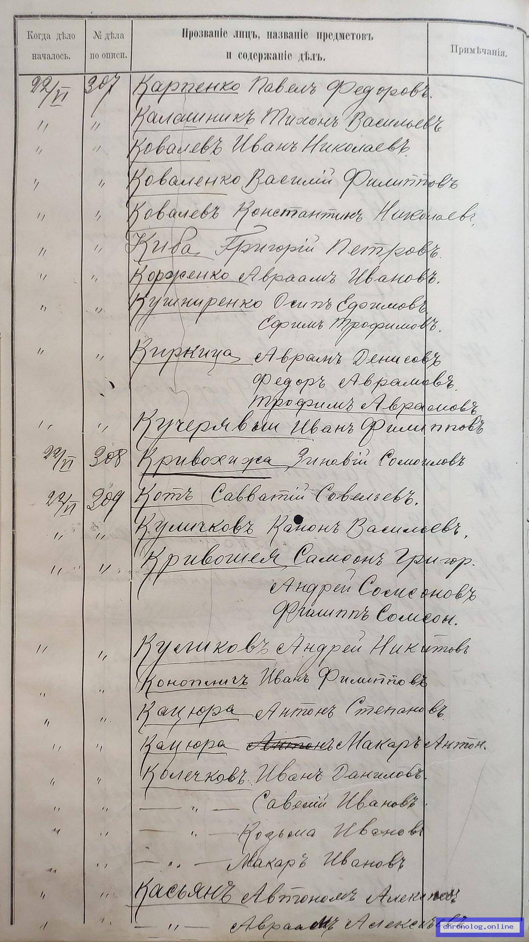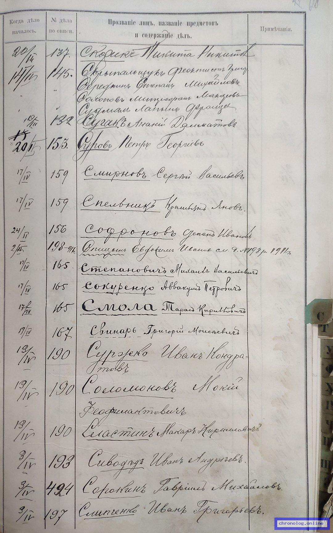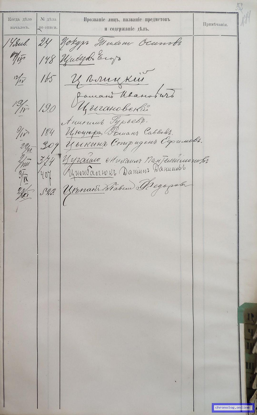РГИАДВ 704-4-3230, Л.84об (Указатель дел переселенческой части за 1912 год): Недовес Карп Кузмович показан со ссылкой на дело (старая опись, нумерация не действительная) №184 от 7.4.1912. Время и место исхода не показано. Снимки: 84об. | |||