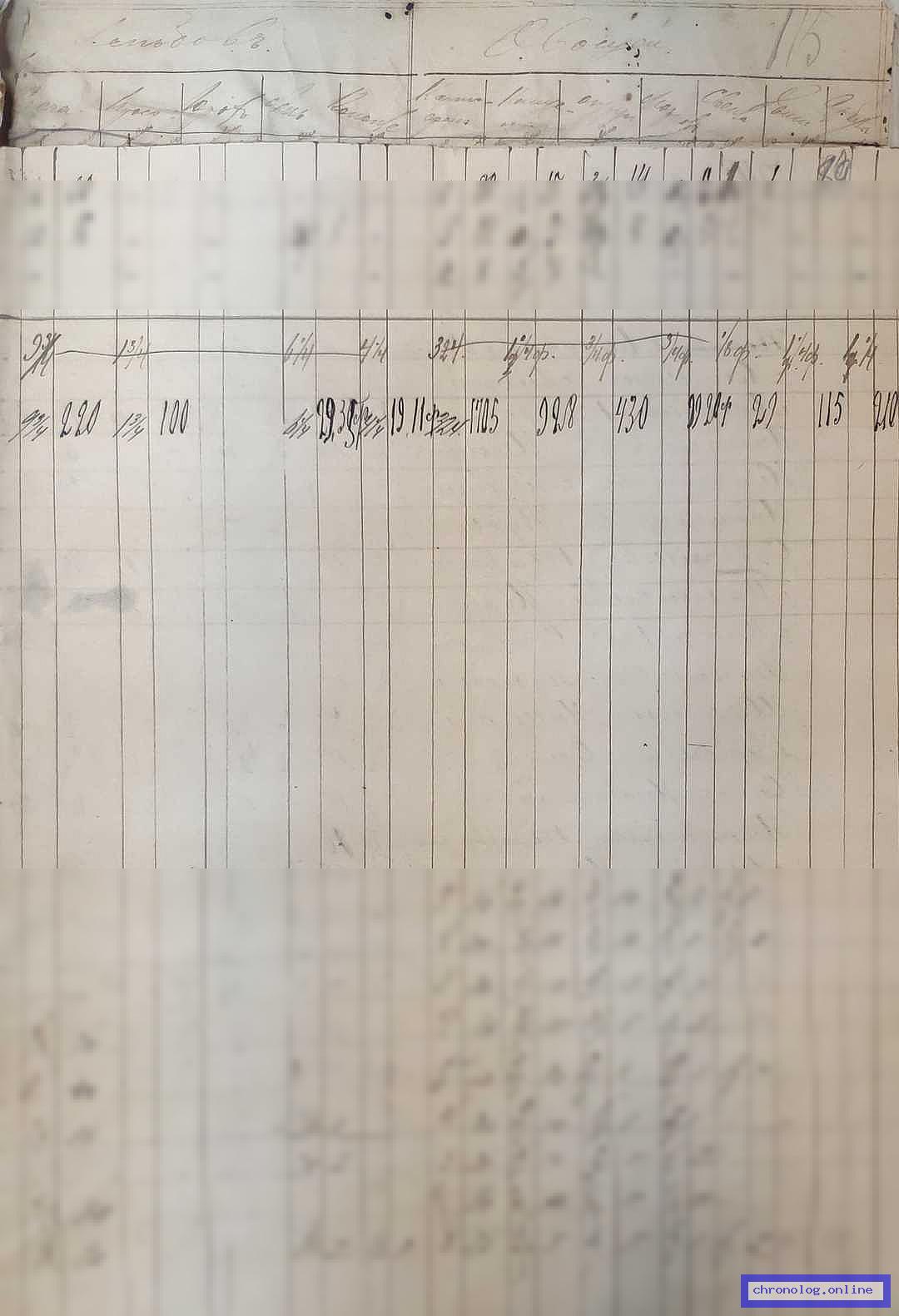 РГИАДВ 746-1-37, Л.32об., 33, 88об., 89 (Сведения о крестьянских селениях и посеве хлеба на 1896 год): Хозяйство Жолобова Ильи Яковлевича: 1 дом, 2 амбара на 500р., 8 коров, 2 быка, 5 овец, 6 свиней на 1100р.; посевы: ярицы ½, пшеницы ¼, ячменя ¼, овса 1, льна ¾, картофеля 4, капусты 2, огурцов 1, свеклы 2. Время и место исхода не показано. Снимки: 32об, 33, 88об, 89. | |||