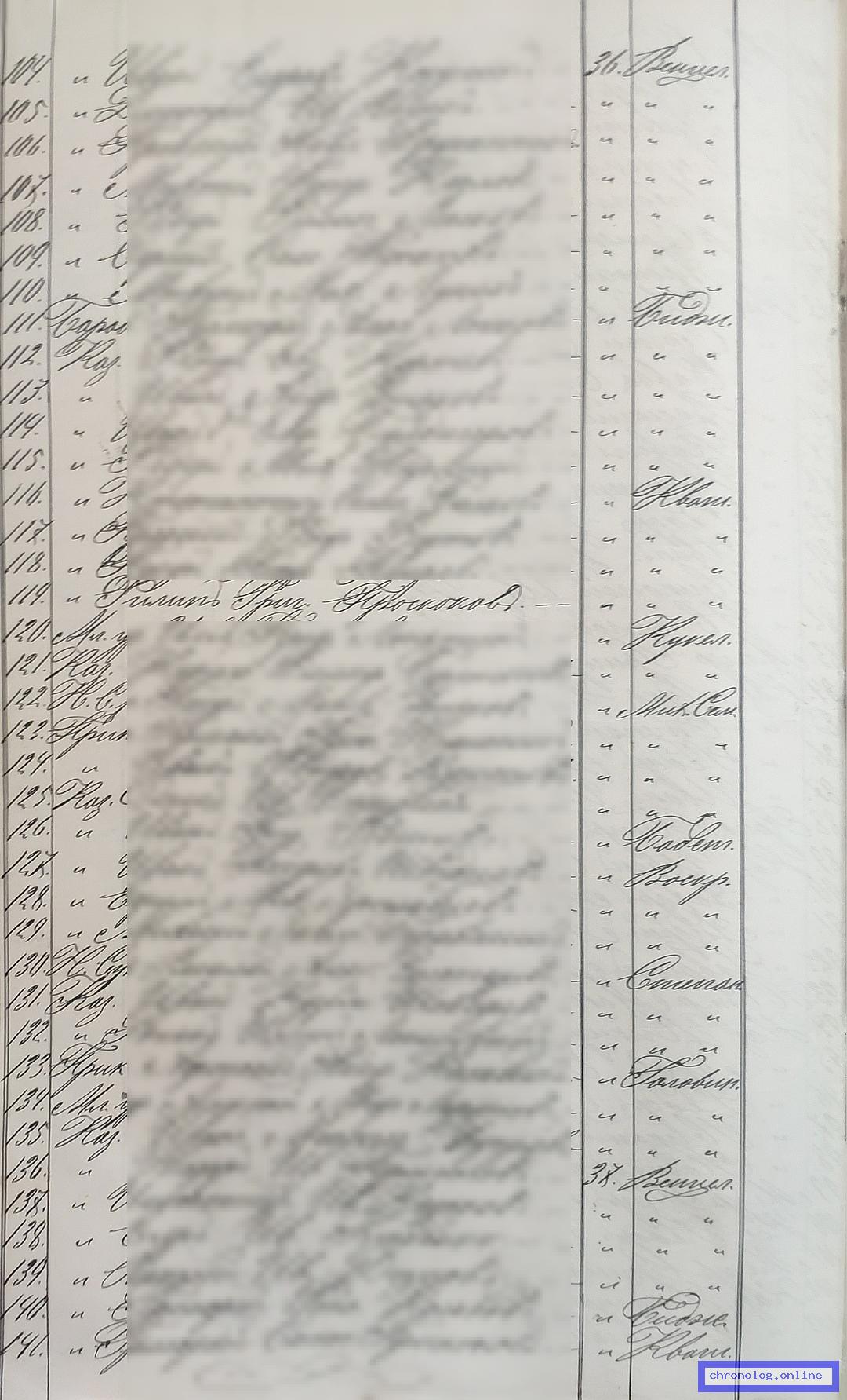 РГИАДВ 793-1-419, Л.293об (Списки казакам, вахмистрам, урядникам Амурского казачьего войска по возрастам, разрядам и округам на 1900 год): Казак запасного разряда Филипп Григорьевич Проскоков 36 лет из посёлка Квашнинского показан в списке по Михайлосемёновскому станичному округу. Время и место исхода не показано. Снимки: 293об. | |||