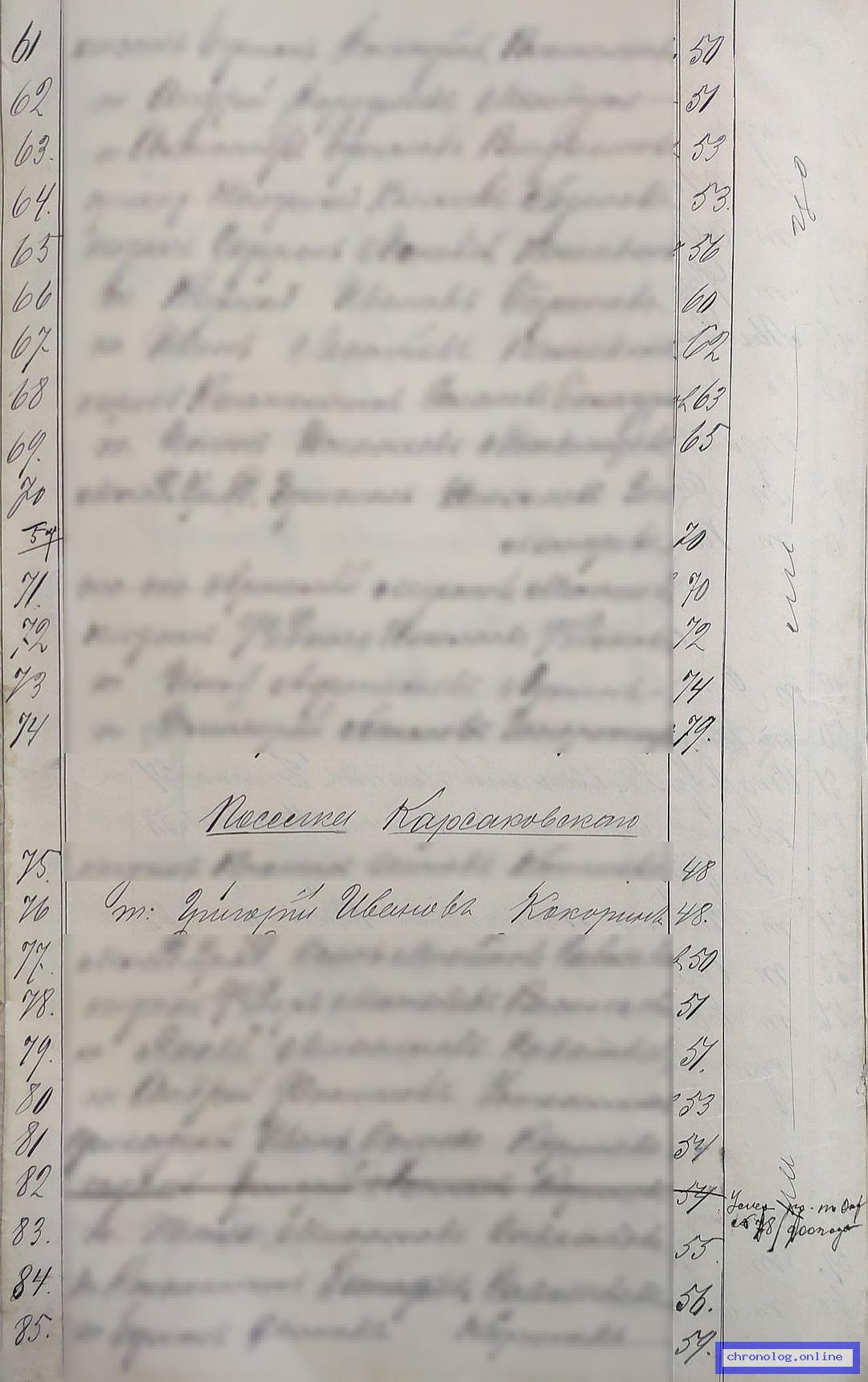 РГИАДВ 704-4-105, Л.48 (О выдаче ссуд переселенцам в 1867 году): Каребин Гаврил Миронович упомянут в ассигновке № 2135 на выдачу 500 рублей. Время и место исхода не показано. Снимки: 48. | |||