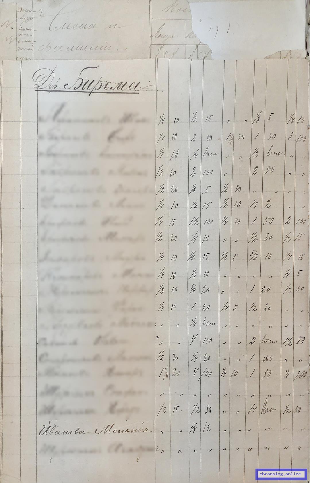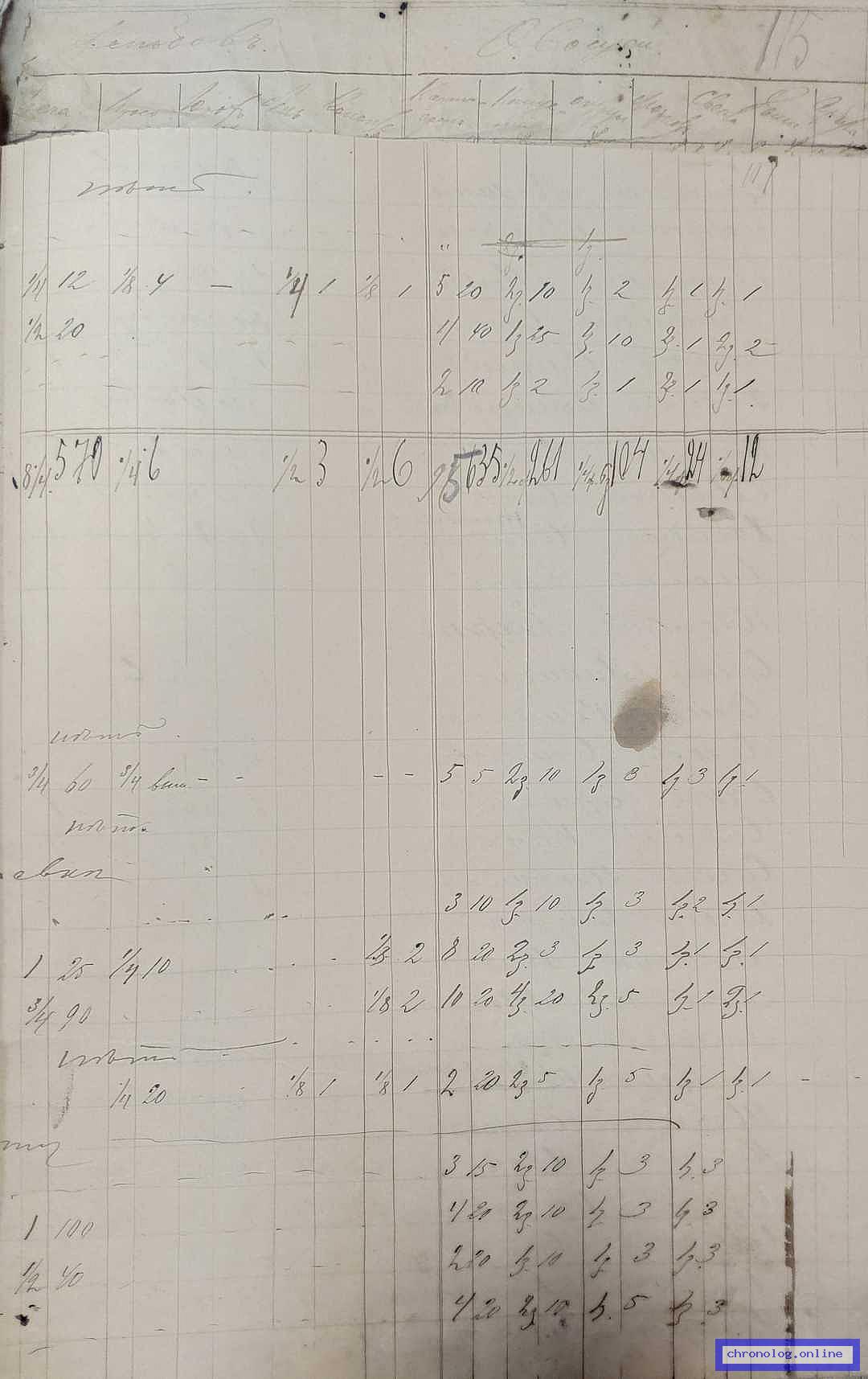 РГИАДВ 746-1-37, Л.46об., 47, 106об., 107 (Сведения о крестьянских селениях и посеве хлеба на 1896 год): Хозяйство Борисова Кузьмы: 1 дом, 2 амбара, 1 баня на 400р., 1 лошадь, 7 коров, 2 овец, 4 свиней на 500р.; посевы: 1 ярицы, 3 пшеницы, ½ ячменя, 2 овса, ¾ гречи, 1/8 конопли, 10 картофеля, 4 капусты, 2 огурцы, 1 моркови, 2 свеклы. Время и место исхода не показано. Снимки: 46об, 47, 106об, 107. | |||