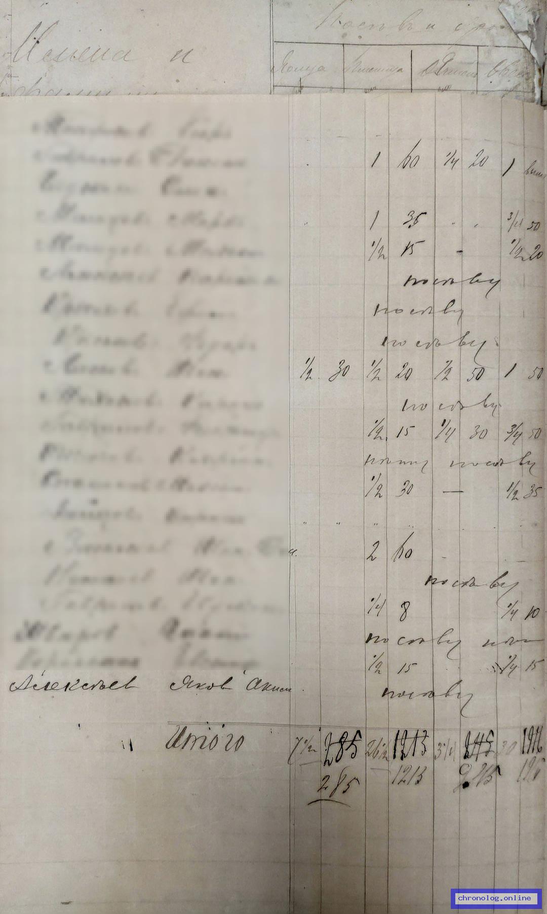 РГИАДВ 746-1-37, Л.82об., 83 (Сведения о крестьянских селениях и посеве хлеба на 1896 год): Хозяйство Ивановой Мелании не показано; посевы: ¾ пшеницы, 2 картофеля, 1 капусты, 2 огурцы, ½ моркови. Время и место исхода не показано. Снимки: 82об, 83. | |||