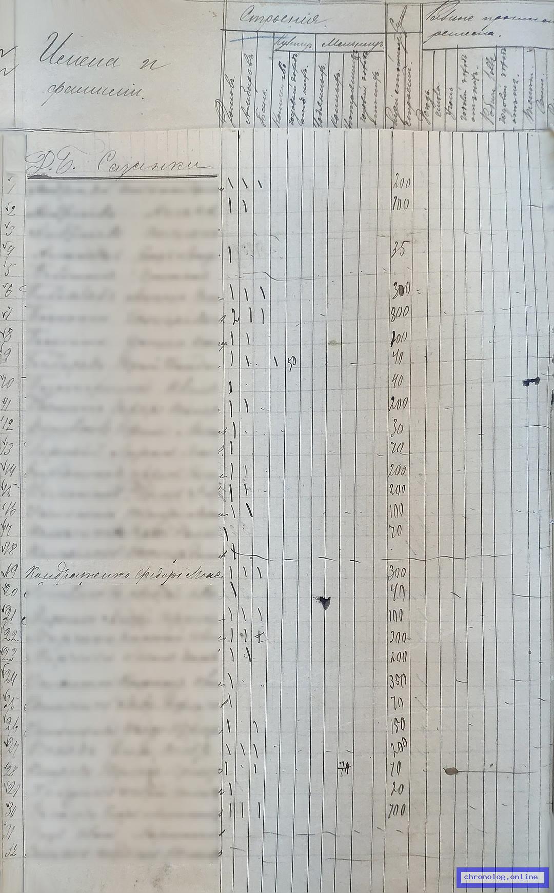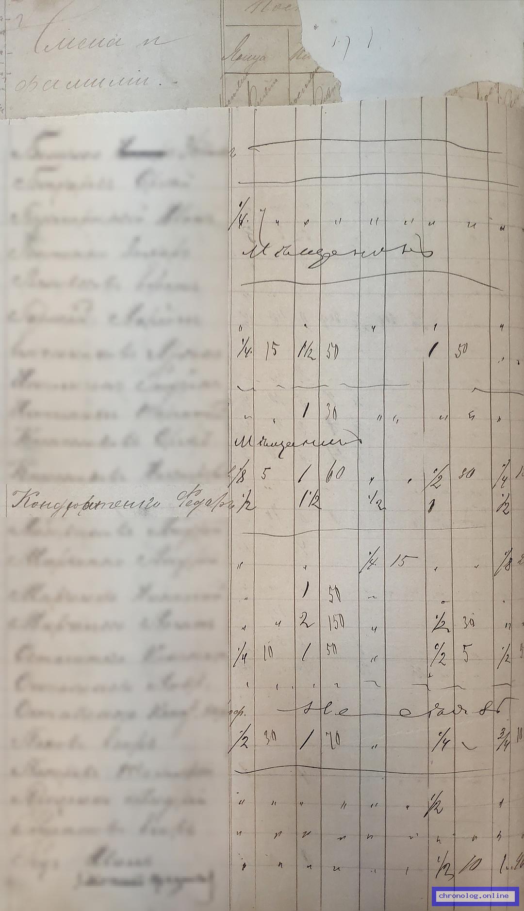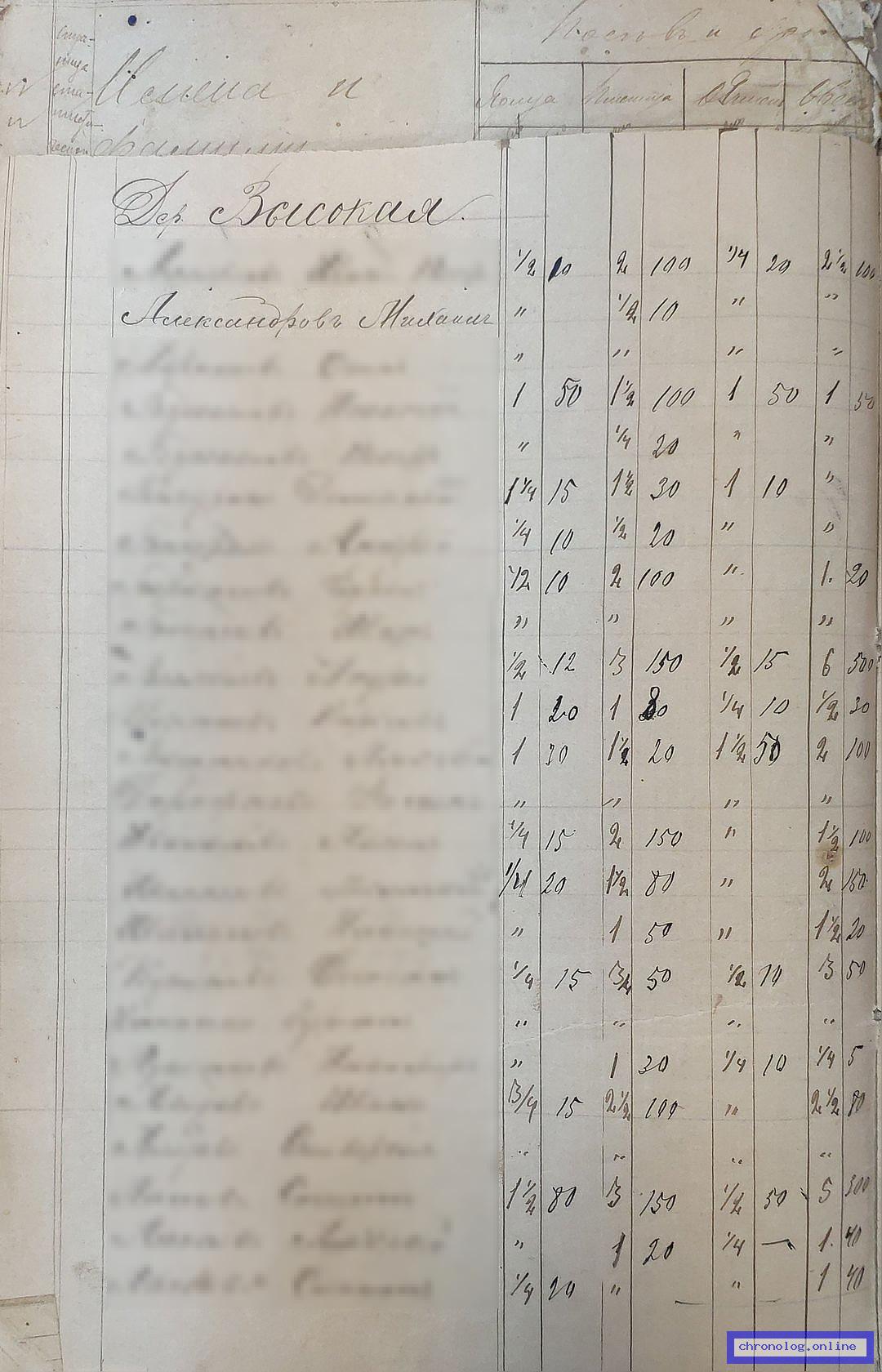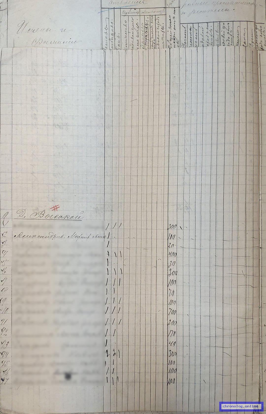 РГИАДВ 746-1-37, Л.8об., 9, 68об., 69 (Сведения о крестьянских селениях и посеве хлеба на 1896 год): Хозяйство Кондратенко Фёдора Моисеевича : 1 дом, 1 амбар, 1 баня на 300р., 1 лошадь, 4 коровы, 2 овцы на 200р.; посевы: ½ ярицы, 1½ пшеницы, 1 ячменя, ½ овса, 15 картофеля, 2 капусты, 5 огурцы, 1 моркови, 5 свеклы, 12 дынь, 12 арбузов. Время и место исхода не показано. Снимки: 8об, 9, 68об, 69. | |||