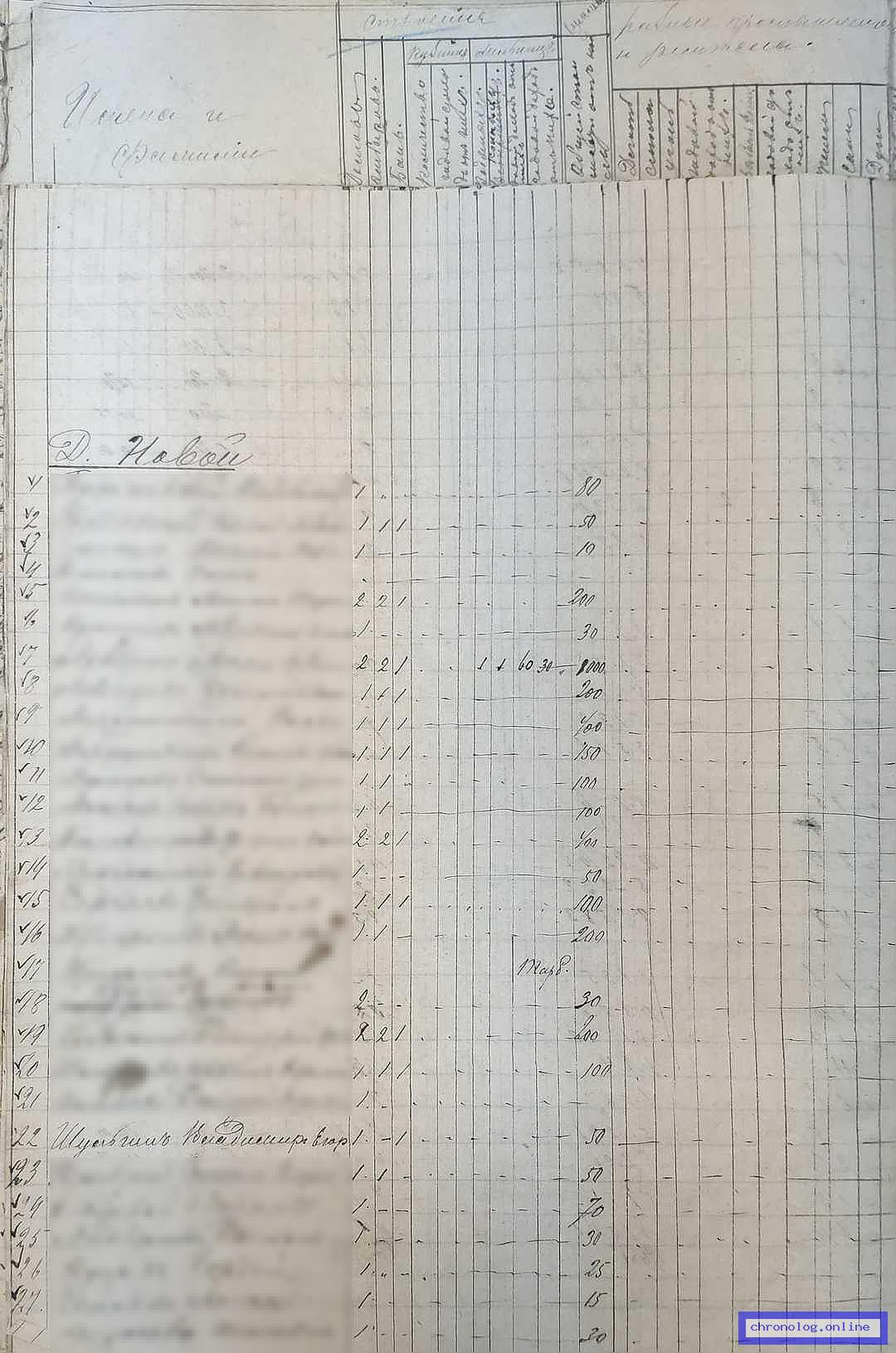 РГИАДВ 746-1-37, Л.45об., 46, 105об., 106 (Сведения о крестьянских селениях и посеве хлеба на 1896 год): Хозяйство Шульмина Владимира Егоровича: 1 дом, 1 баня на 50р., 2 лошади, 1 корова, 2 овец на 120р.; посевы: 1 картофеля, 2 капусты, 1 огурцы. Время и место исхода не показано. Снимки: 45об, 46, 105об, 106. | |||