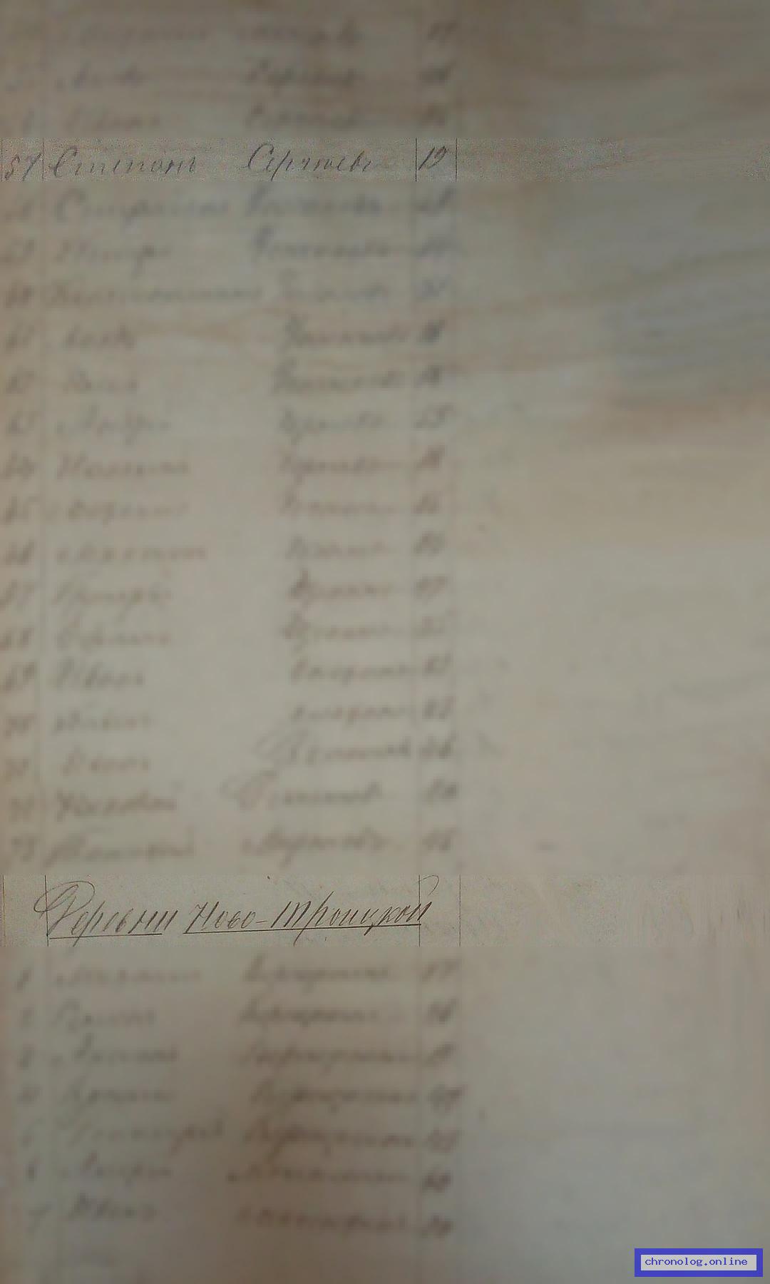 РГИАДВ 704-4-344, Л.15об (Список крестьян Амурской области, подлежащих отбытию повинностей в 1882 году): Крестьянин деревни Сергеевской Миронов Тимофей 43 лет. Время и место исхода не показано. Снимки: 15об. | |||