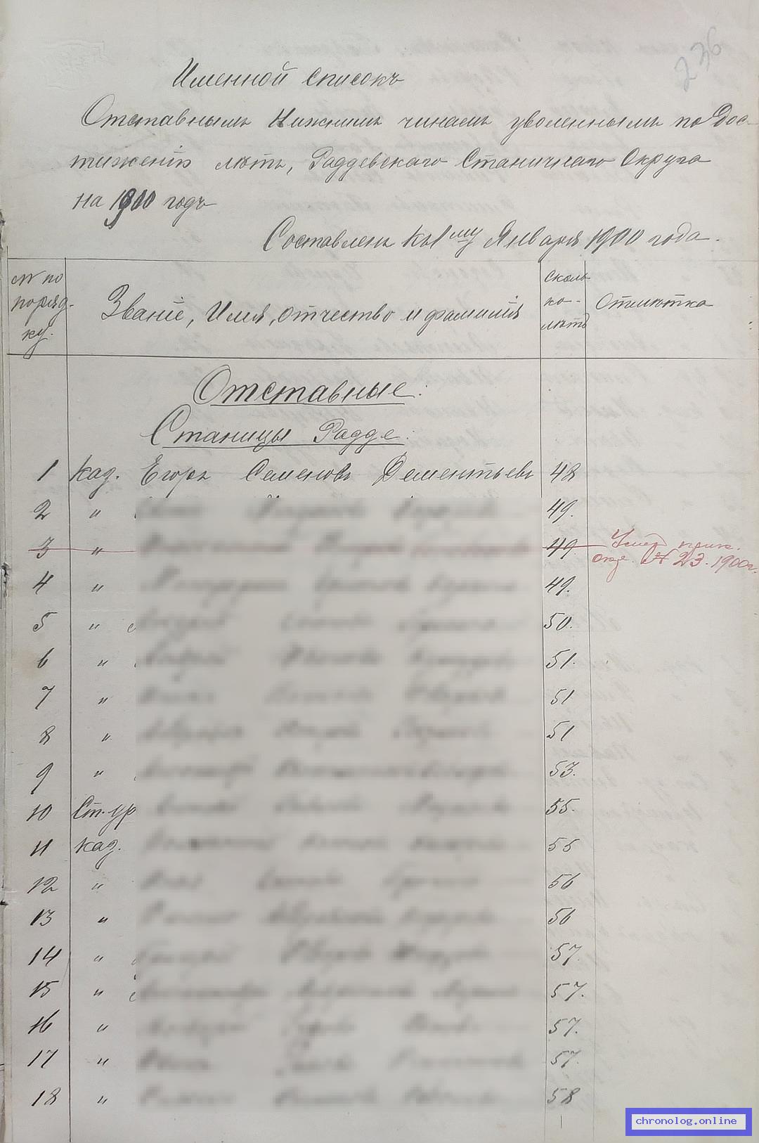 | Дементьев Егор Семёнович | станица Радде (Раддевский станичный округ) | 1900 ( | |