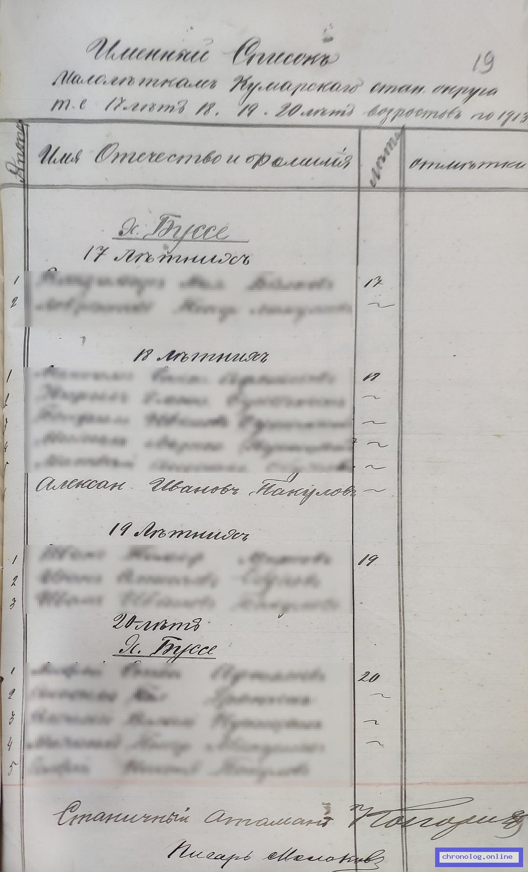 | Шунков Иван | поселок Пузиновский (Екатерино-Никольский станичный округ) | 1887 ( | |