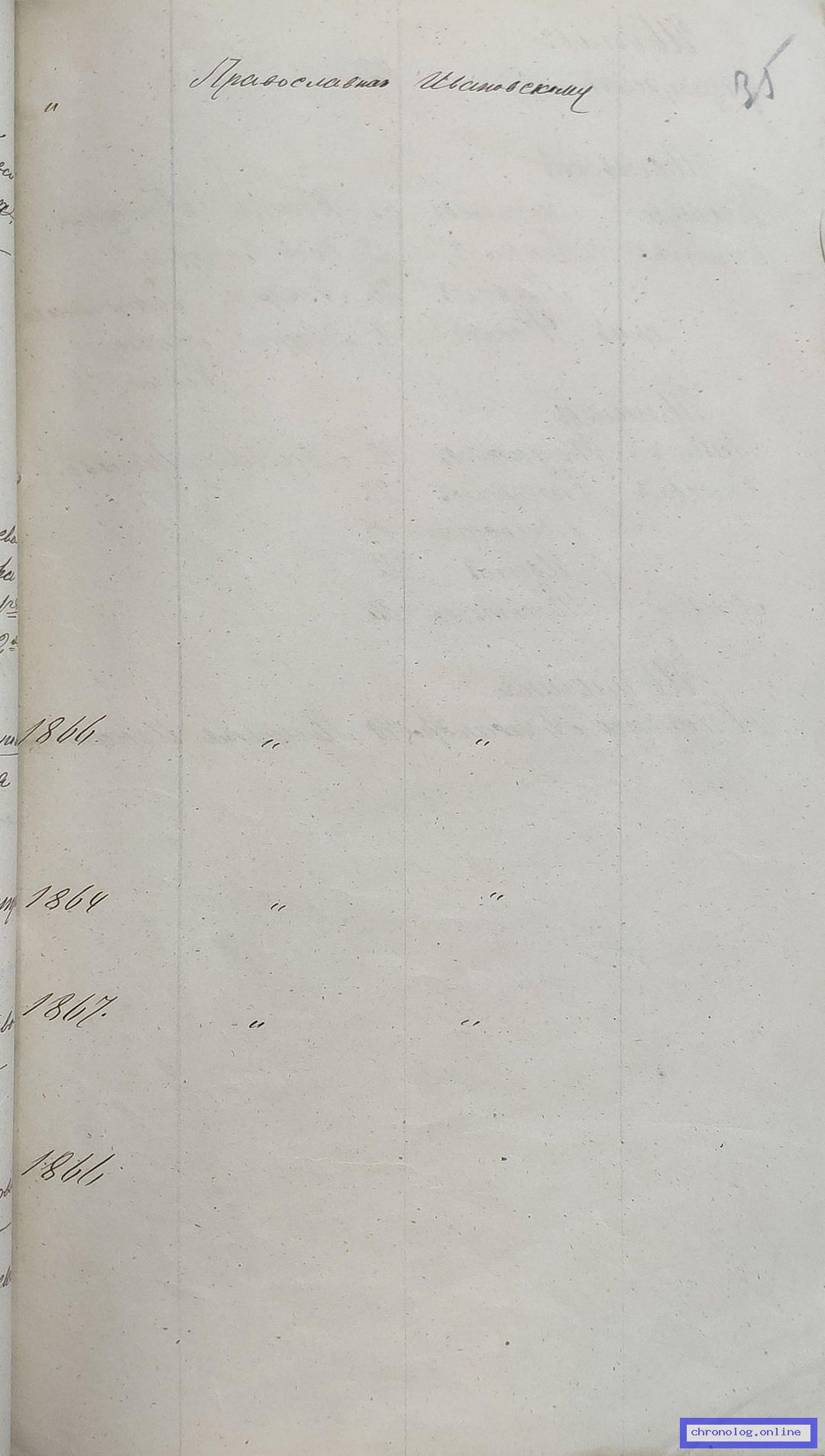 РГИАДВ 704-4-295, Л.34об., 35 (Список крестьян Ивановской волости на 1878 год): Крестьянин Черятников Анисим Иванович 35 лет, его жена Агафья Фотиевна 34 лет, у них дети: Василий 17 лет, Александра 11 лет, Евдокия Первая 8 лет, Евдокия Вторая 2 лет. Жительствуют в посёлке Ивановке с 1866 года. Время и место исхода не показано. Снимки: 34об, 35. | |||