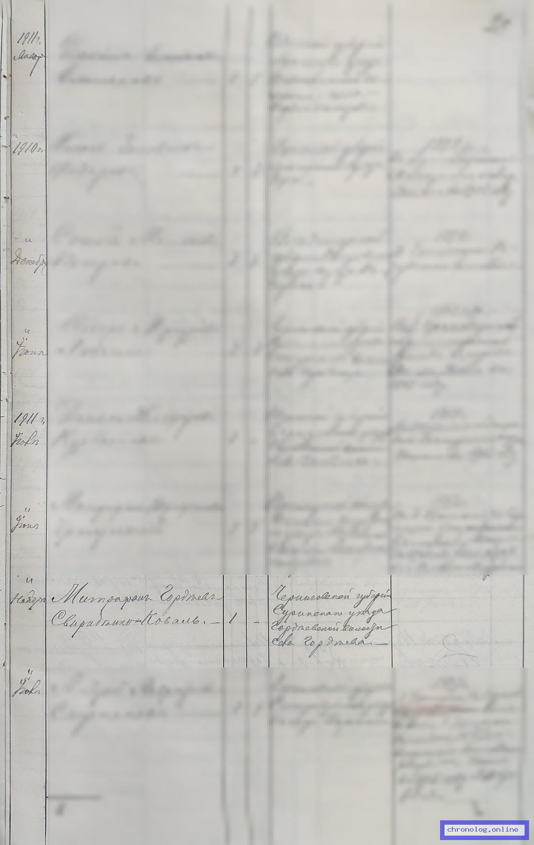 РГИАДВ 704-4-3228, Л.12об, 23 (Списки запасных солдат армии и флота, переселившихся в Амурскую область за 1912 год): Запасной нижний чин Митрофан Гордеевич Свириденко-Коваль показан в таблице водворившихся на переселенческих участках Кухтеринского подрайона Амурского района. Исход: село Гордеево Гордеевской волости Суражского уезда Черниговской губернии. Снимки: 10, 12об, 21, 23. | |||