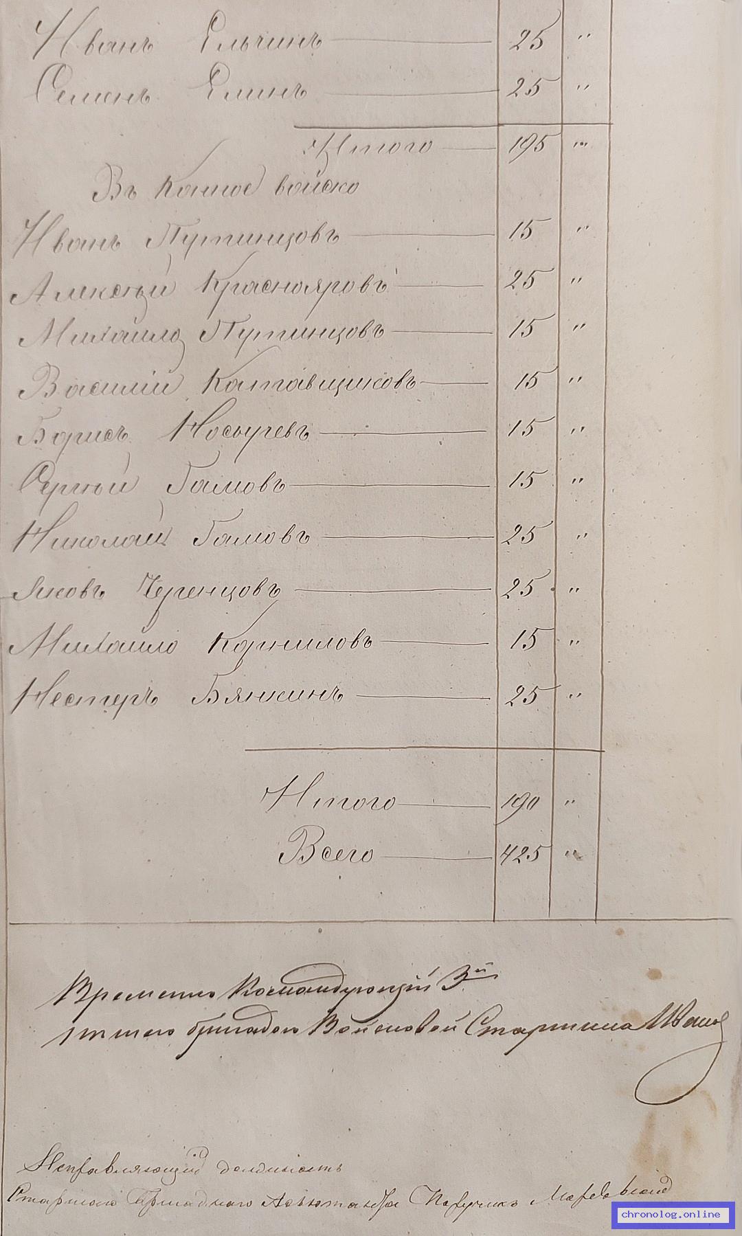 ГАЗК 30-2-297, Л.24об (О выдаче беднейшим казакам дополнительного пособия): Казак 12-го батальона Иван Путинцев-Путинцов показан в списке урядникам и казакам, нуждающимся в пособии. Исход: Нерчинский уезд. Снимки: 24об. | |||